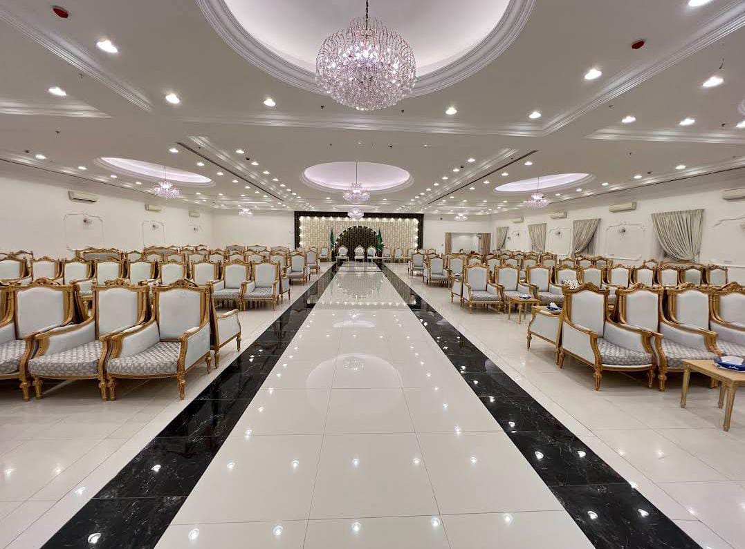 المساحات الواسعة تساعد على تنظيم الحفل بشكل مريح وتسمح باستقبال أعداد كبيرة من الضيوف في أجواء مرتبة ومناسبة للمناسبات الكبيرة.
