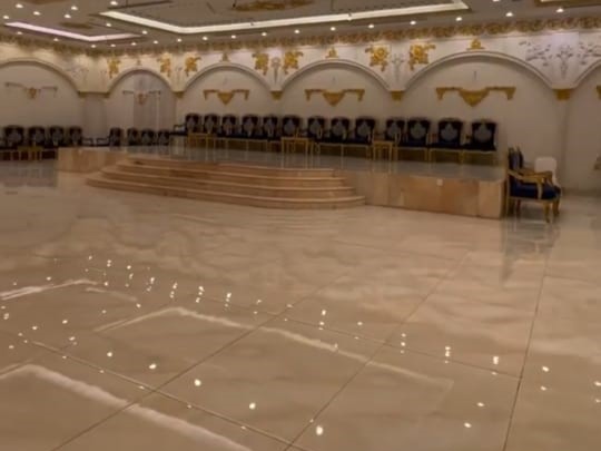 ديكورات ملكية، أسقف مزينة بثريات كريستال لامعة، وأرضيات مفروشة بأفخم السجاد.