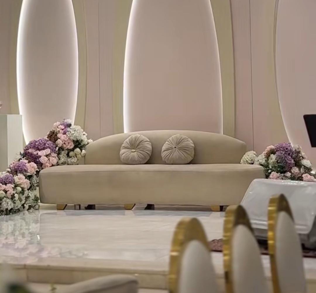 ممر مخصص لدخول العروس، ومنصة كوشة يتم تنسيقها بعناية لتكون نقطة التركيز في ليلة الزفاف.