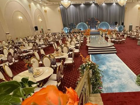 تصميم أنيق وفاخر: تتميز قاعة مياسين بتصميم عصري وجميل يجمع بين الفخامة والرقي، مما يوفر بيئة مثالية لإقامة حفل زفاف فاخر أو مناسبة خاصة.