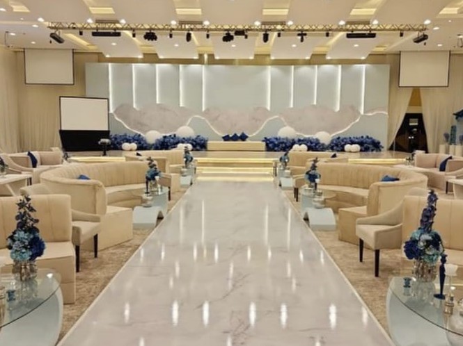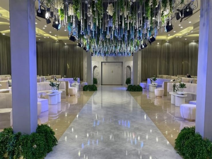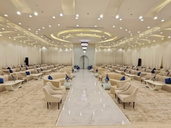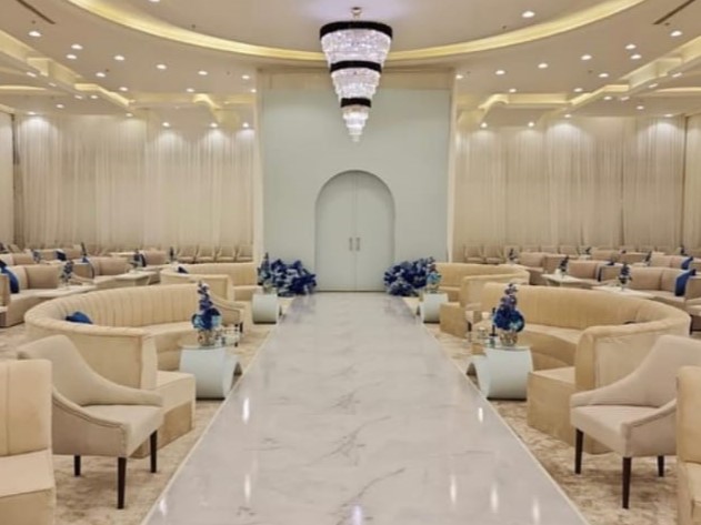 ثريات كريستالية ضخمة، أرضيات رخامية لامعة، أثاث فاخر مريح، وإنارة حديثة تعكس أجواء ملكية تضيف لمسة فخامة على كل لحظة.