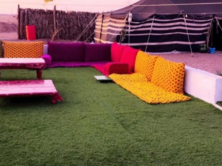 - خيمة رئيسية واسعة مجهزة للضيافة والجلسات.