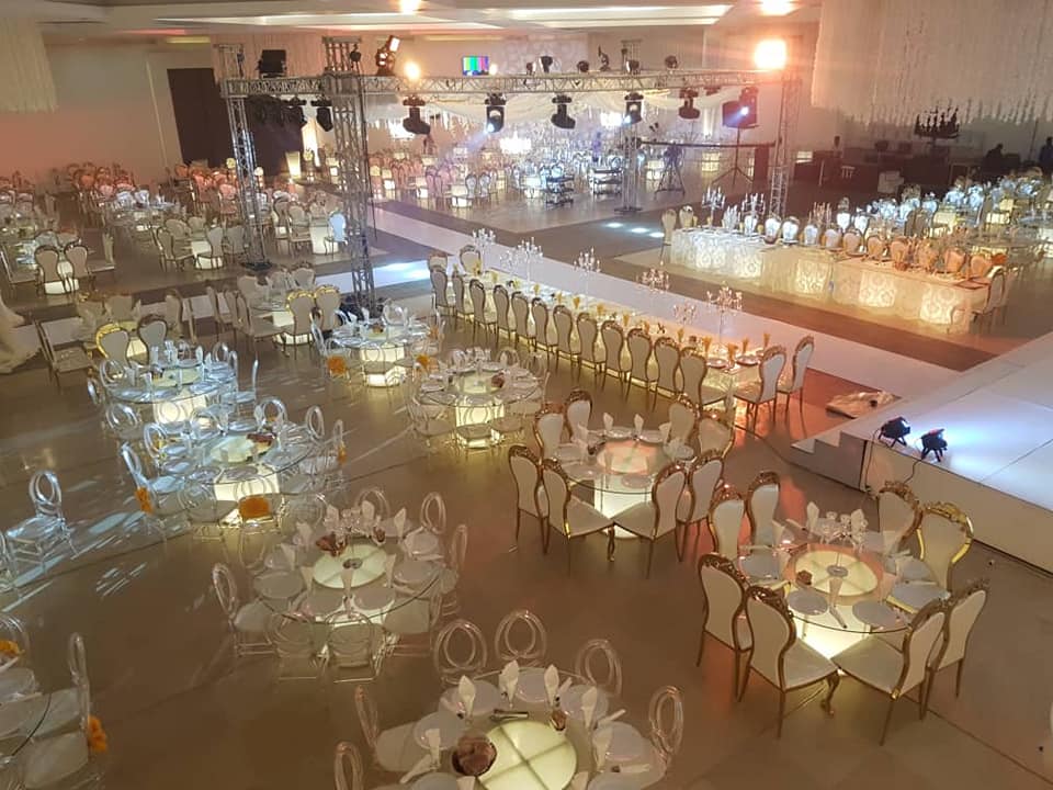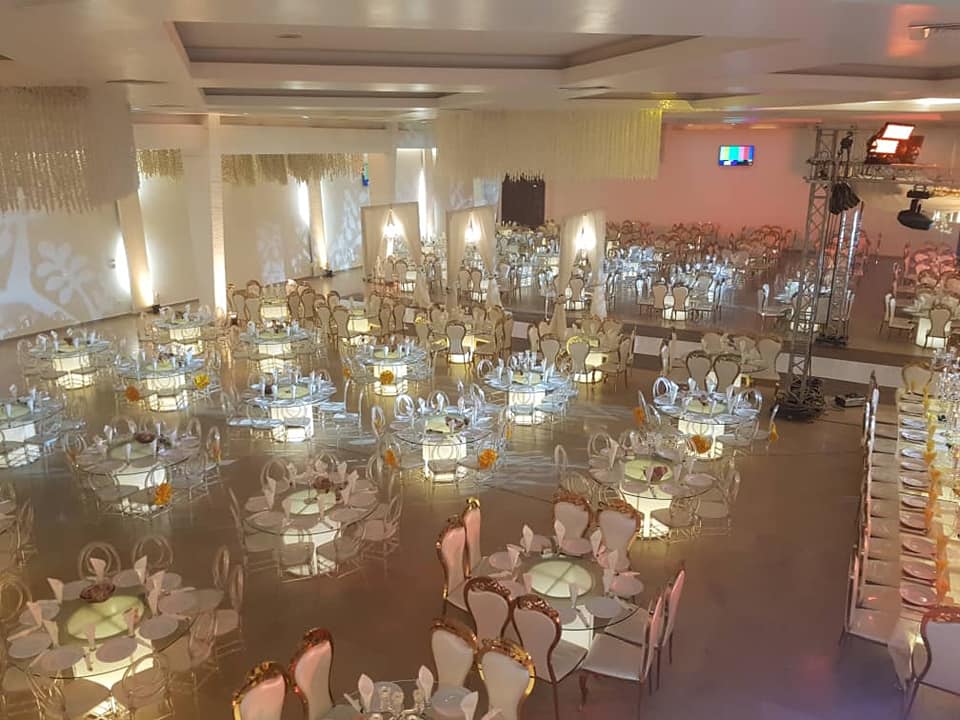 الصالة كبيرة وواسعة، بتستوعب لحد 1000 شخص، ومناسبة لكل أنواع المناسبات من أعراس، خطوبات، حفلات تخرج، مؤتمرات، واجتماعات رسمية. مجهزة بكل الخدمات المطلوبة عشان مناسبتك تمشي بسلاسة ومن غير أي تعب عليك.