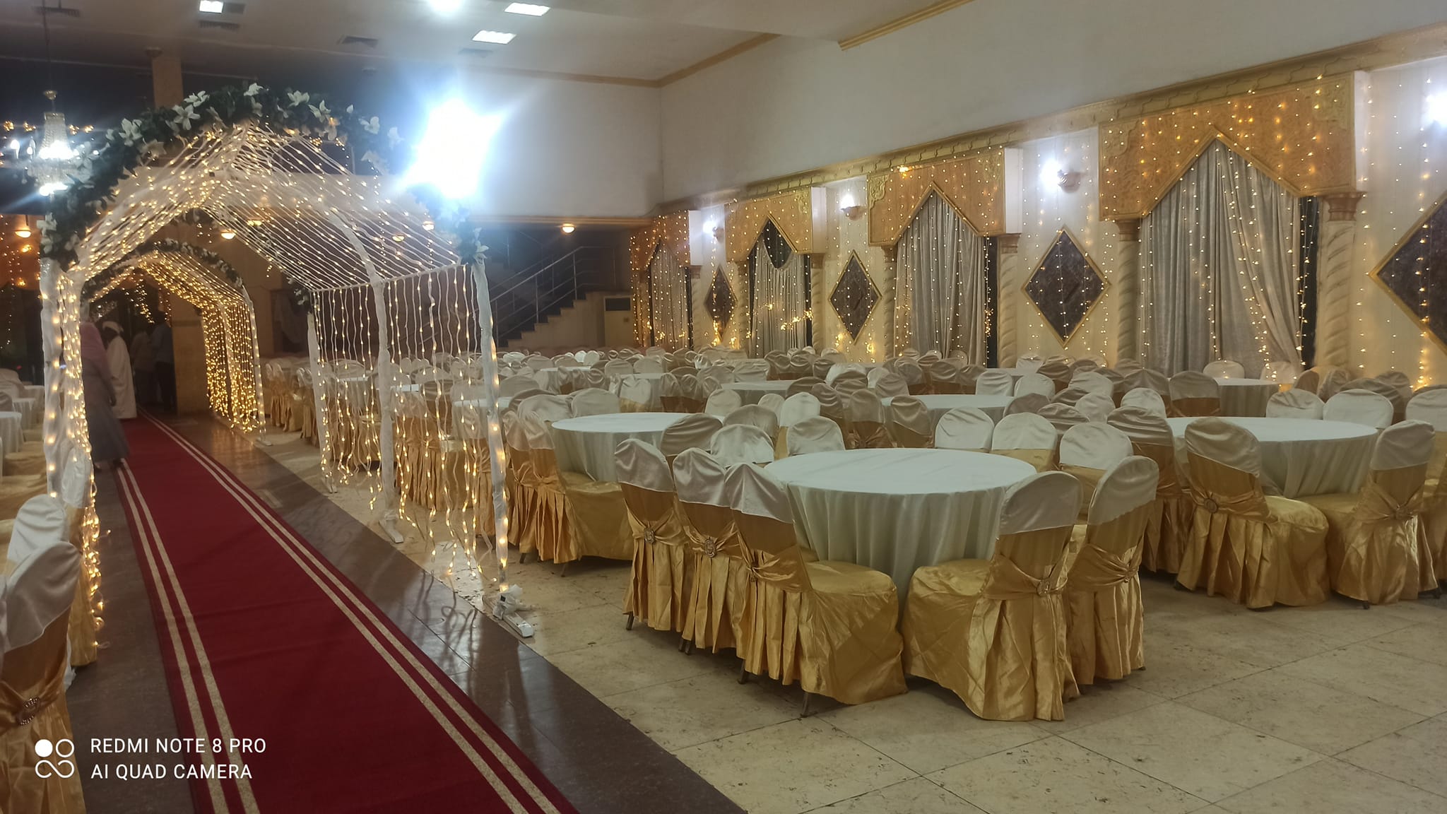 القاعة تتسع حتى 600 شخص، وده بخليها مناسبة لحفلات الزفاف، الجرتق، حفلات التخرج، المناسبات العائلية، والاجتماعات المتوسطة. المساحة منظمة بطريقة تسمح بترتيب الطاولات والكوشة والمسرح بصورة مريحة بدون ازدحام.