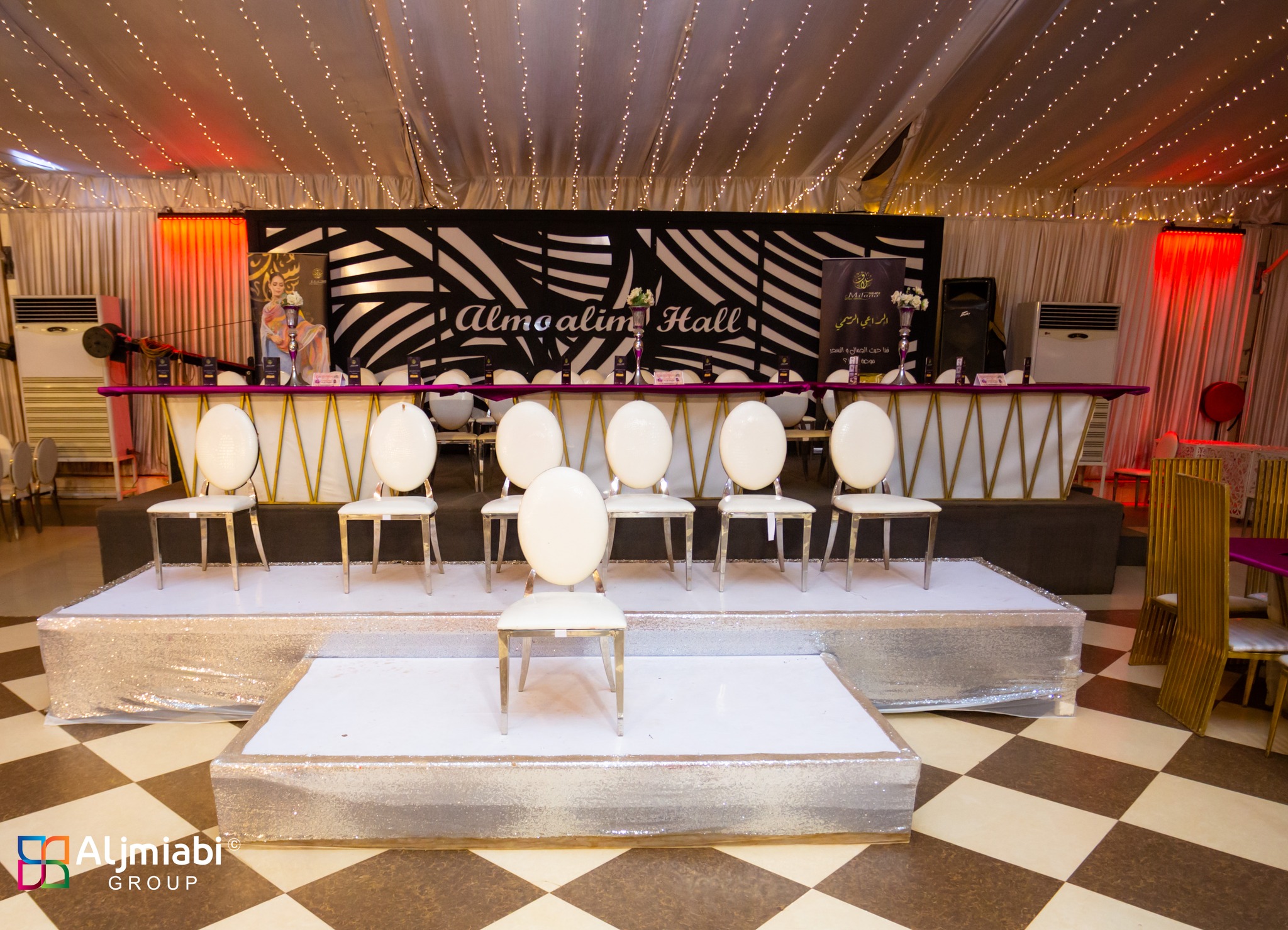 تتميز الصالة بمسرح مبهر يلفت الانتباه ويخدم فقرات الحفل بصورة واضحة، مع زينة مرتبة وإضاءة راقية تعكس جمال الديكور وتساعد في ظهور التصوير بشكل ممتاز داخل القاعة.