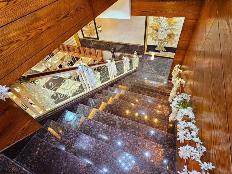 الصالة مجهزة بالكامل بأجواء راقية وديكور أنيق بطابع دمشقي فاخر، لتكون مناسبتكم مميزة من كل التفاصيل، سواء كان حفل زفاف، مناسبة عائلية، أو عيد ميلاد.