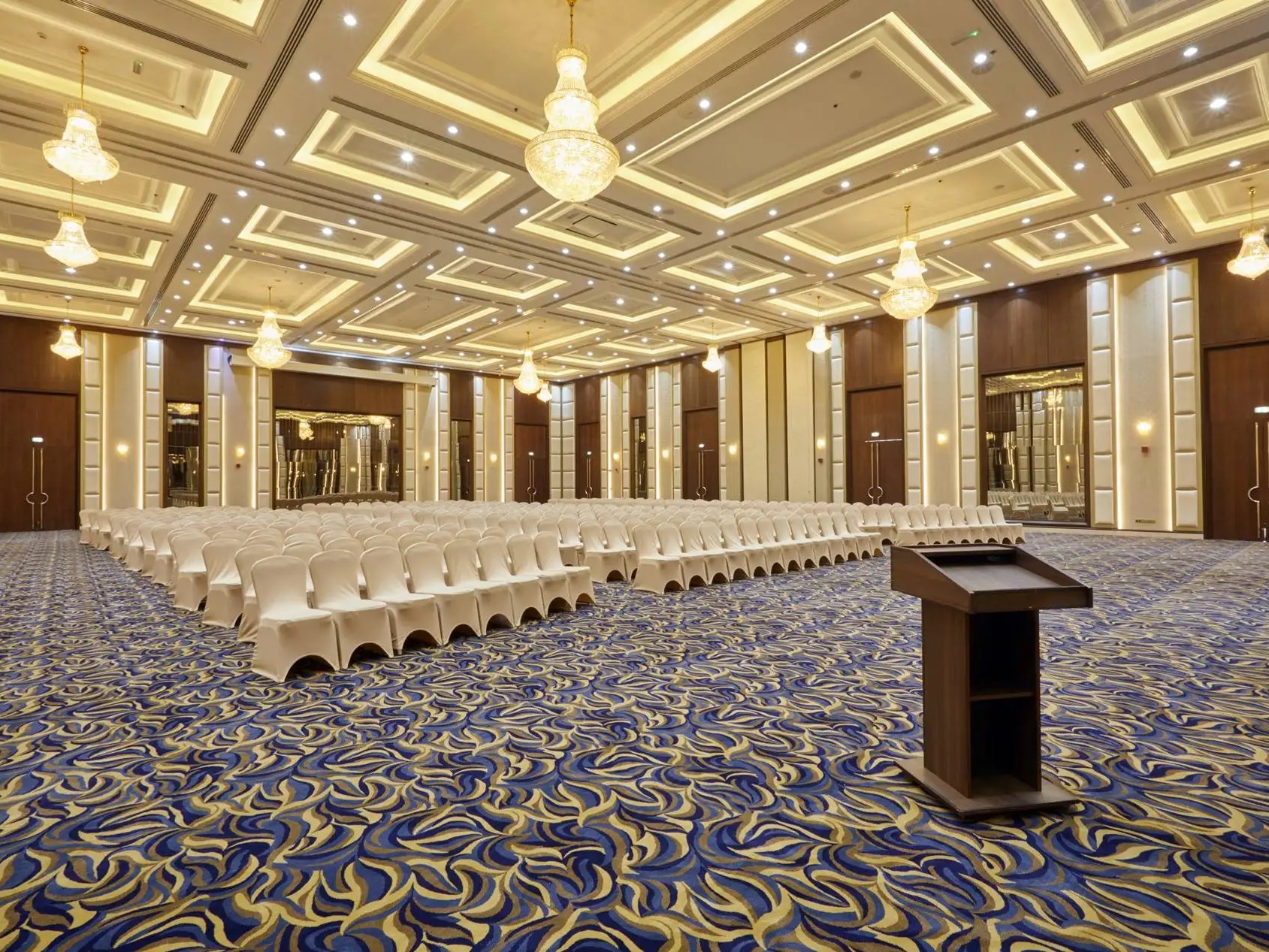 تعد قاعة المؤتمرات الكبرى واحدة من أبرز مرافق الفندق، بفضل التصميم الواسع الممتد على مساحة 830 مترًا مربعًا وسعتها التي تصل إلى 750 مشاركًا، مما يجعلها ملائمة للمؤتمرات الكبرى، الندوات، الملتقيات، حفلات التكريم، واجتماعات المؤسسات الكبيرة.