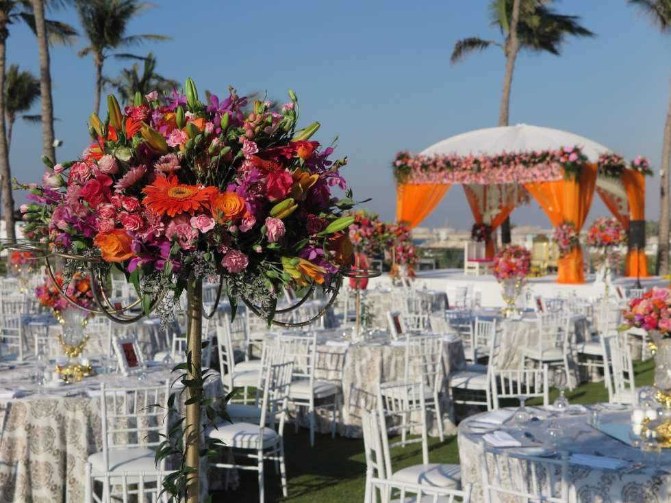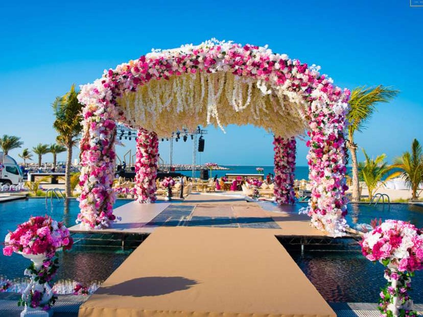 قاعة الزفاف المفتوحة في جيه إيه ذا ريزورت — حيث تُكتب بداية العمر في مشهد لا يُنسى.