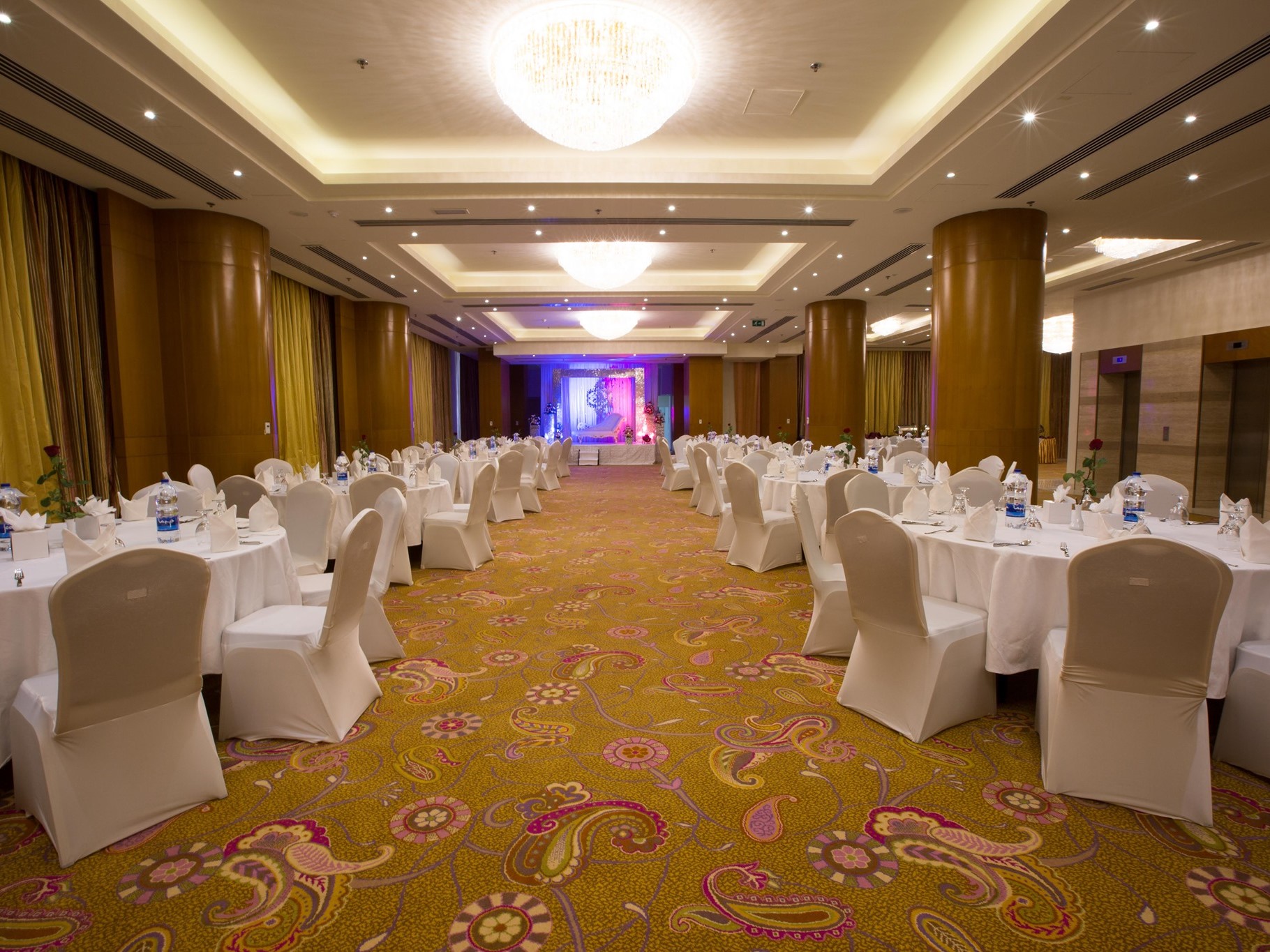 تم تجهيز القاعة بأنظمة صوت وإضاءة احترافية تضمن أجواء راقية ومتناغمة طوال الحفل. كما يضم الفندق فريق تنظيم فعاليات متخصص يتولى جميع التفاصيل، من إعداد القاعة إلى خدمة الضيوف، لضمان احتفال متكامل دون أي مجهود من جانبكم.