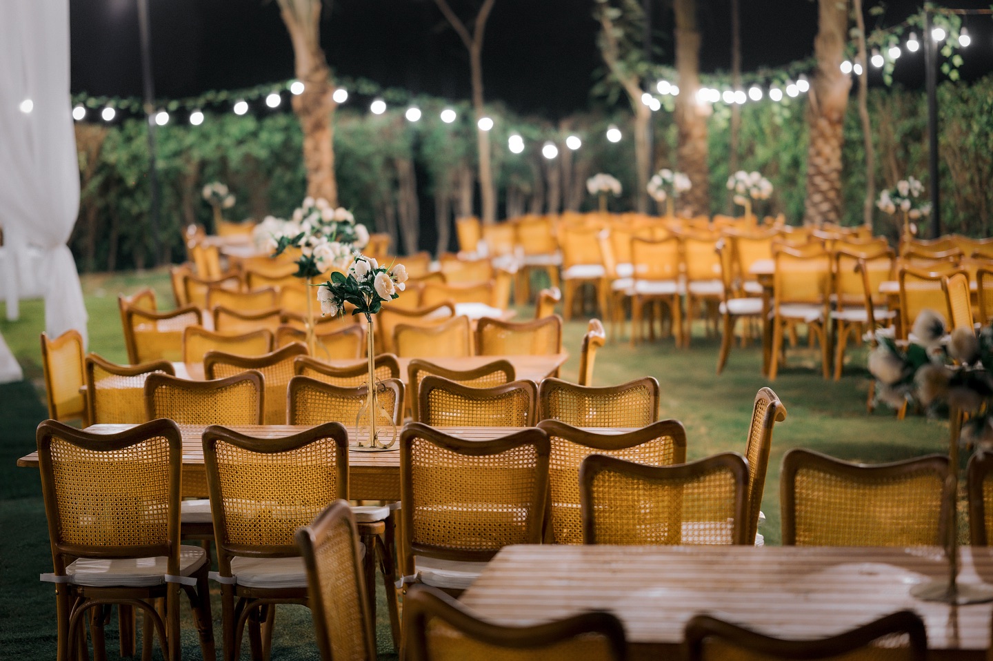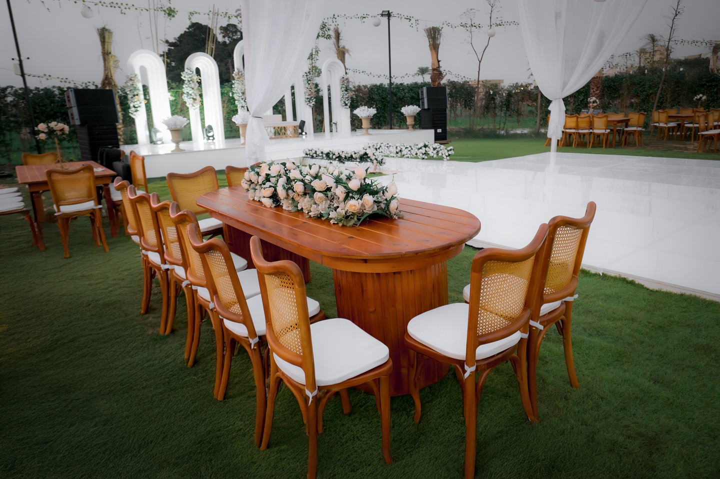 القاعة أوبن إير وبتتسع لحد 250 فرد، وده بيخليها مناسبة للأفراح الراقية، الخطوبات، وكتب الكتاب اللي محتاجة جو هادي ومميز بعيد عن الزحمة.