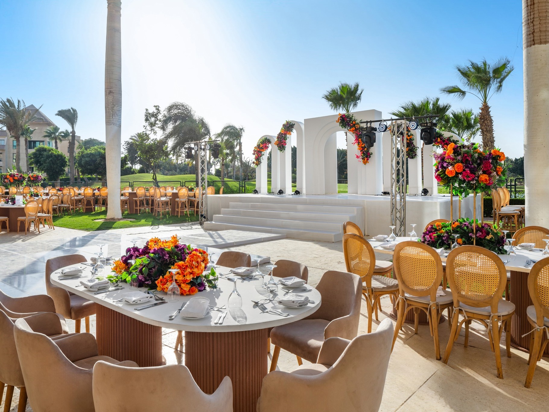 يقدم الفندق تجربة استثنائية لحفلات الزفاف من خلال قاعات أوبن إير مطلة على ملعب الجولف،