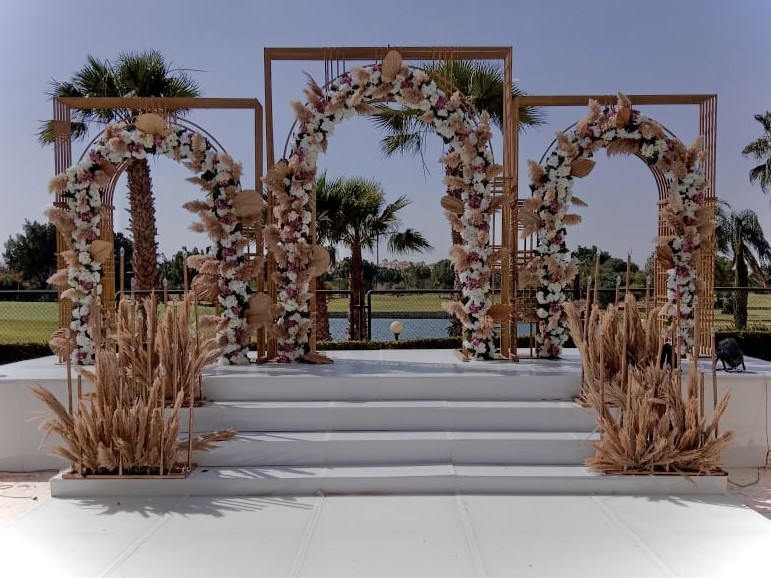 تتسع القاعات الخارجية لاستقبال مئات الضيوف، مع إمكانية تصميم الديكورات بما يتناسب مع رؤية كل عروسين.