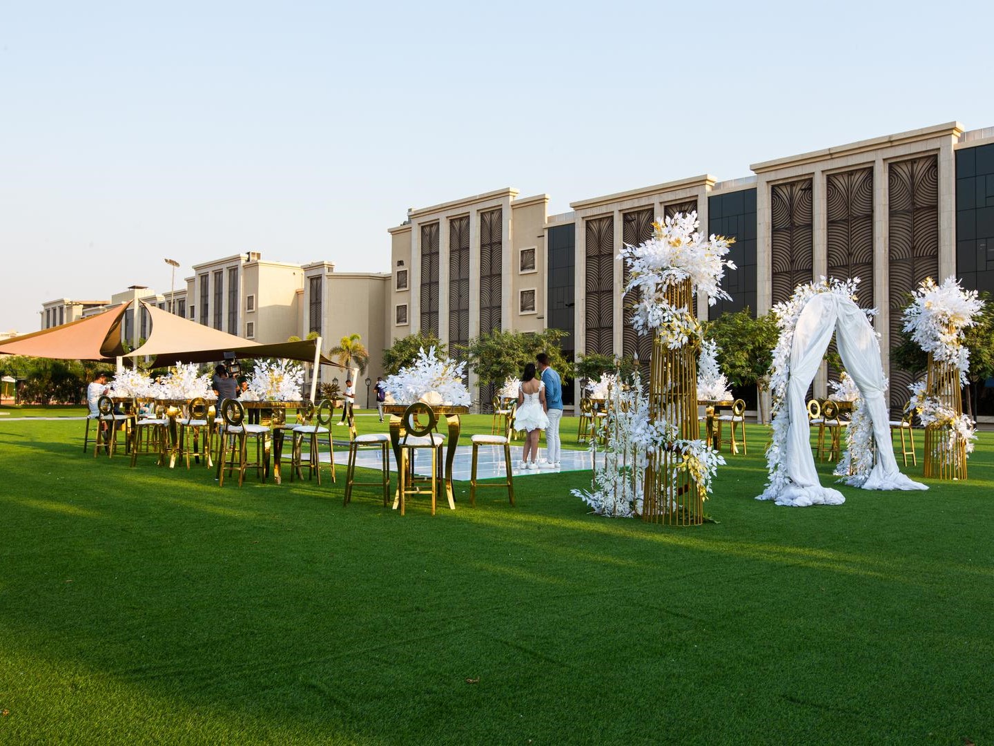 قاعة إل جاردينو الخارجية بمساحة 1548 متر² وسعة تصل لـ 1500 ضيف، بتقدم تجربة استثنائية وسط الطبيعة الخضراء المفتوحة. المكان مثالي للأفراح الرومانسية في الهواء الطلق.