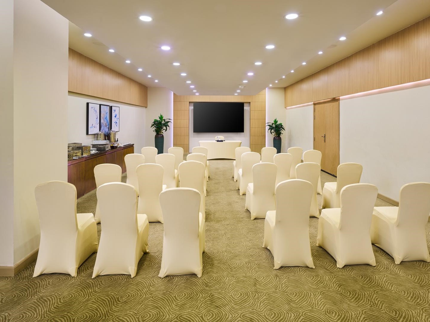 قاعة اجتماعات مجهزة بالكامل، مثالية للاجتماعات التنفيذية، ورش العمل، أو الندوات.