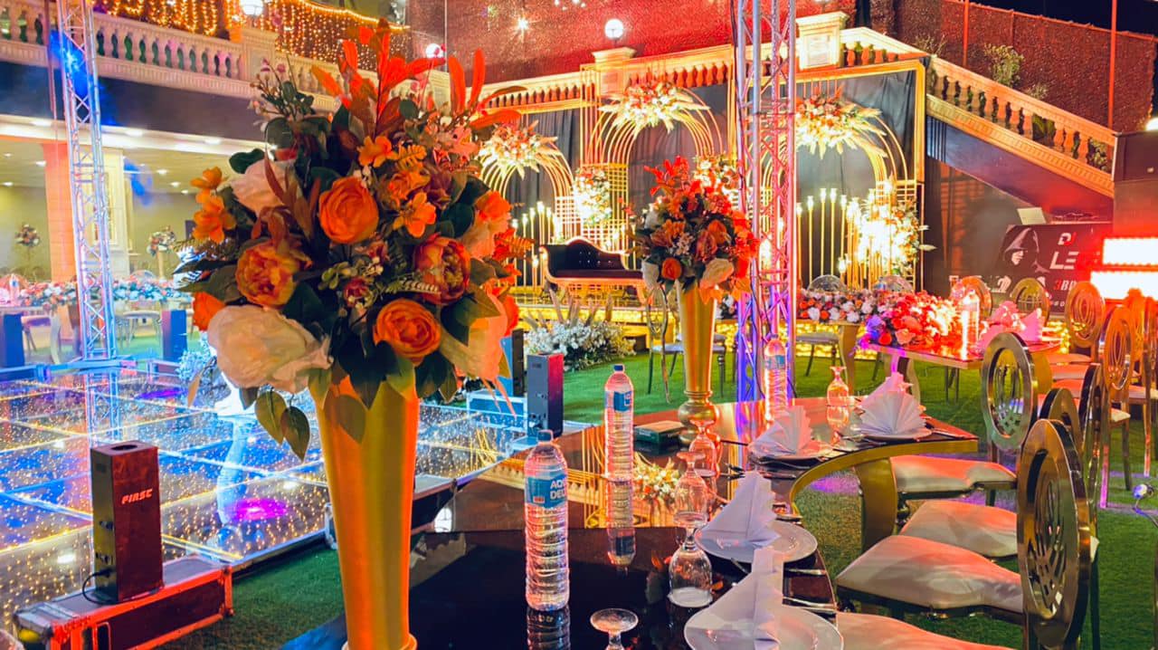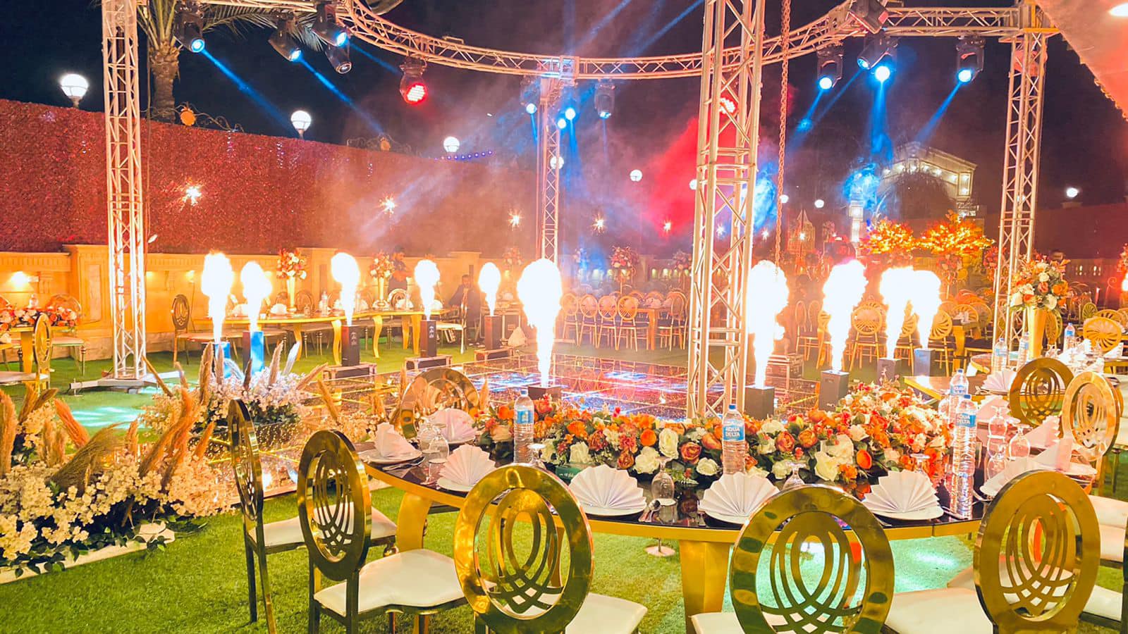المكان مجهز بأحدث الديكورات اللي هتخلي فرحك حاجة تانية مش بس كده كمان الخدمة عندنا مميزة جدًا + فريق عمل محترف هيهتم بكل حاجة من أول لحظة لحد آخر لحظة