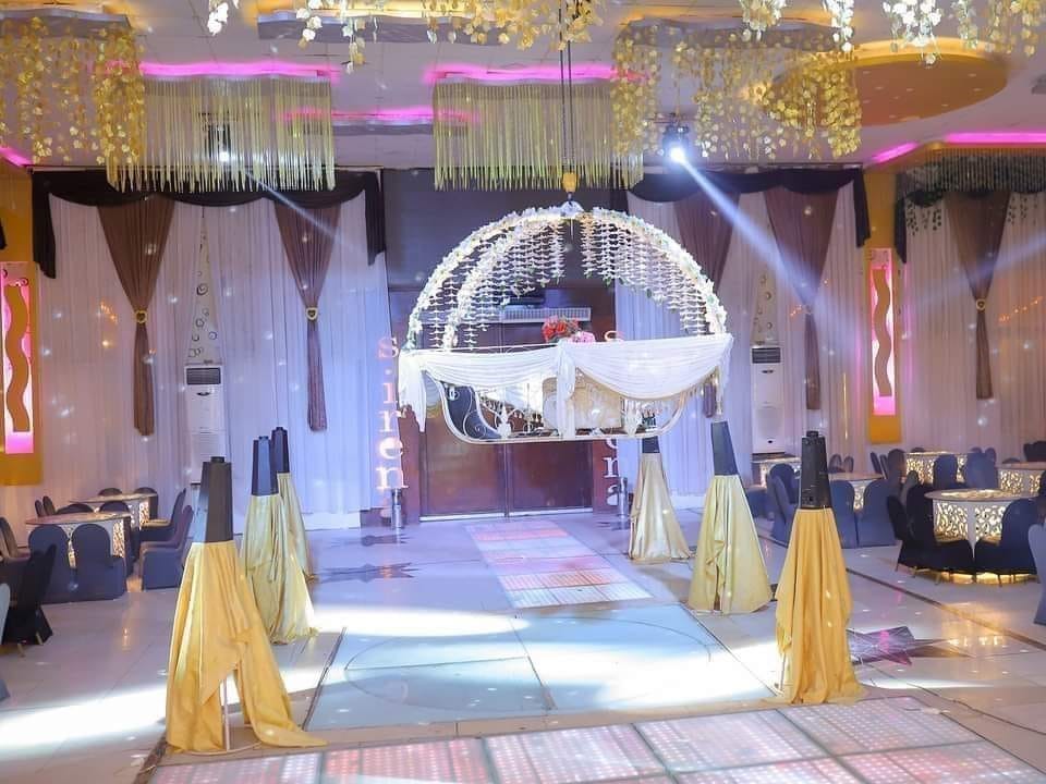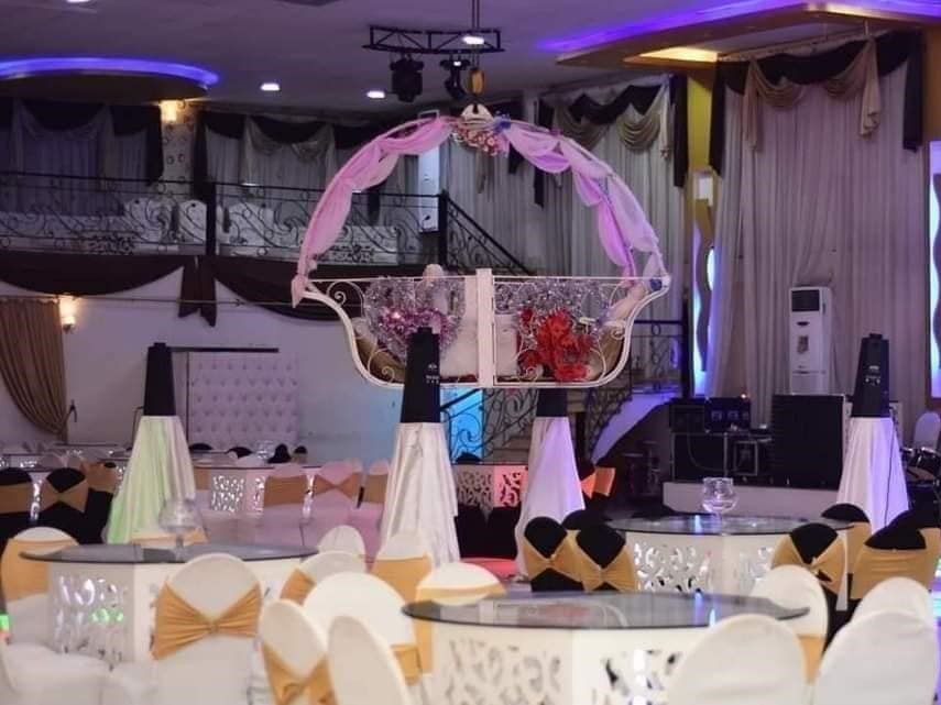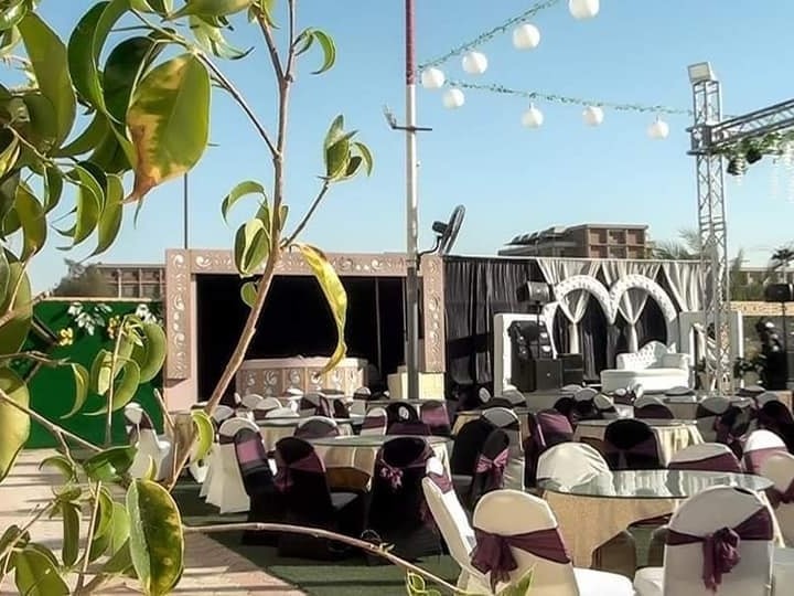 إيجار القاعة: 300 كرسي وكوشة مع ترابيزات، DJ بأحدث الأغاني، ليزر للقاعة، دانس فلور، تصوير فيديو، زفة طبل بلدي، 2 فقرات استعراضية، تورتة 3 دور و250 كانز.