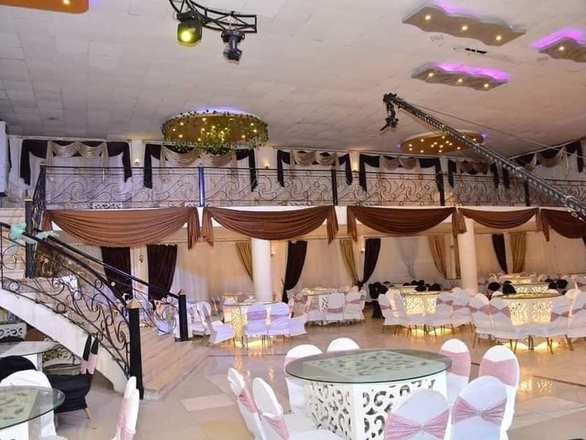 إيجار القاعة: 500 كرسي وكوشة مع بلكونات، ترابيزات مضيئة، DJ بأحدث الأغاني، ليزر للقاعة، بساط سحري، دانس فلور، تصوير فيديو، زفة طبل بلدي، 2 فقرات استعراضية، شو فاير، تورتة 3 دور، 250 جاتوه و250 كانز.