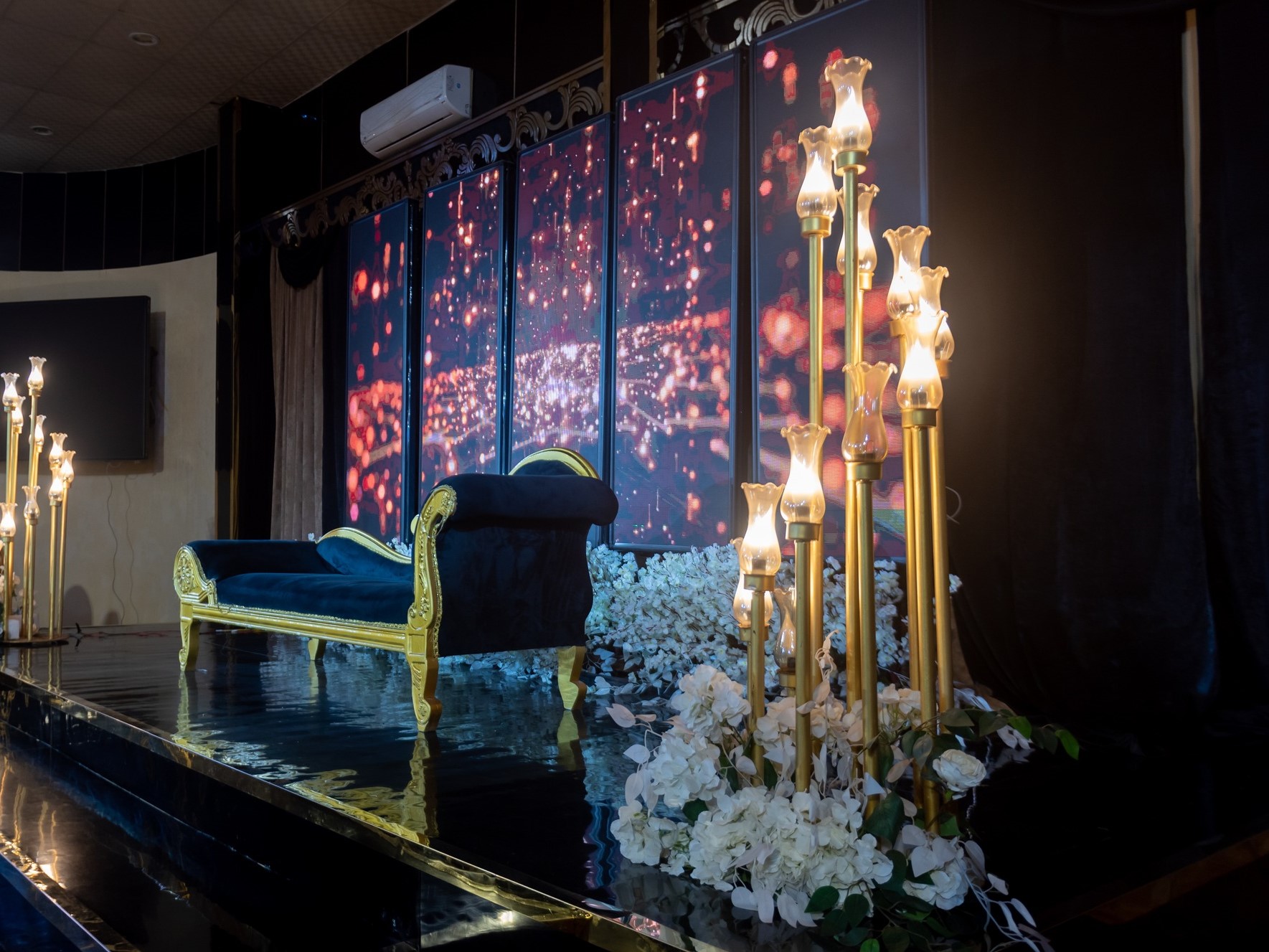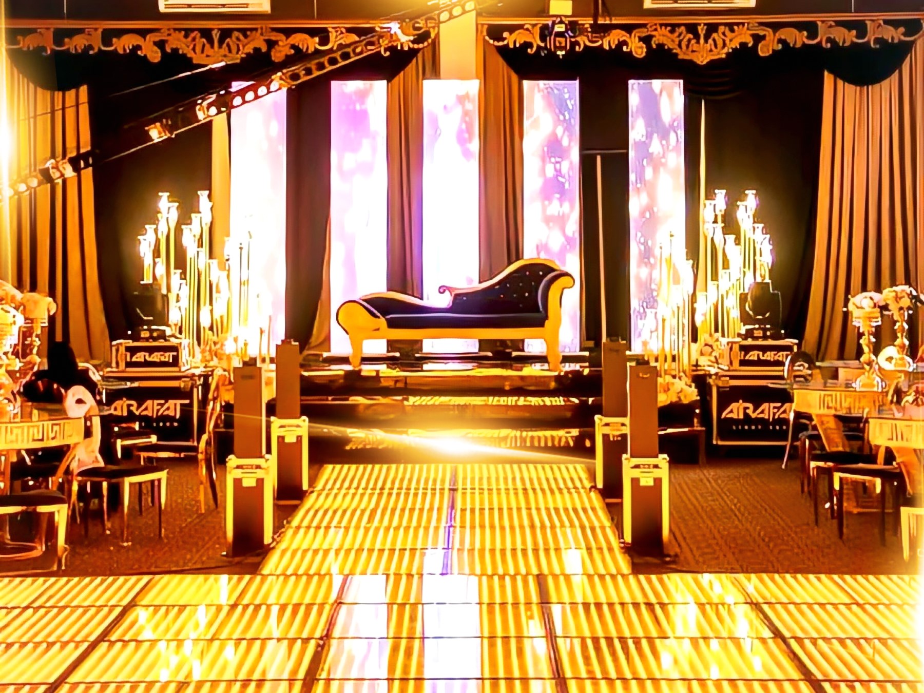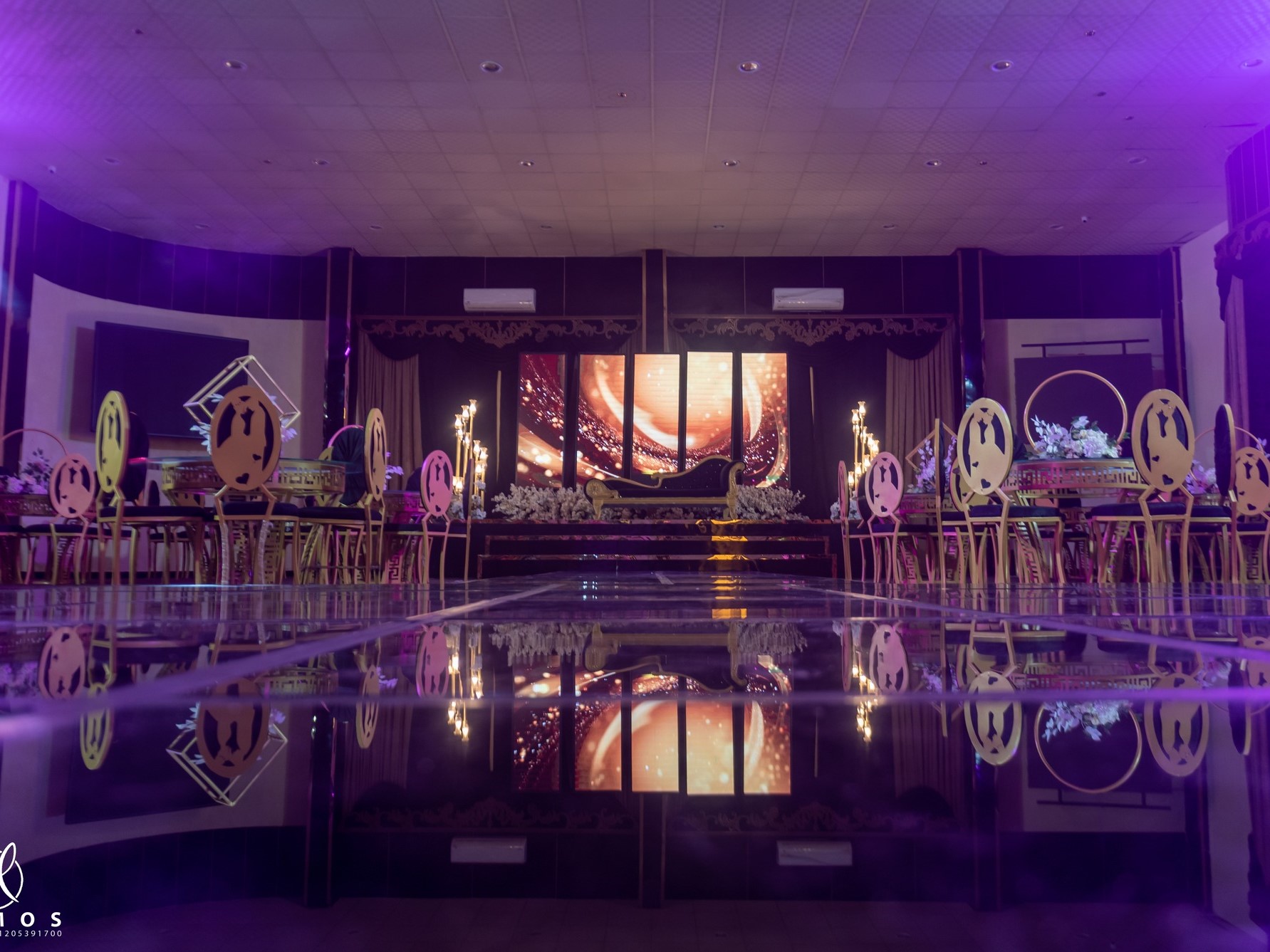 القاعه مجهزه بأحدث الديكورات وشاشات عرض