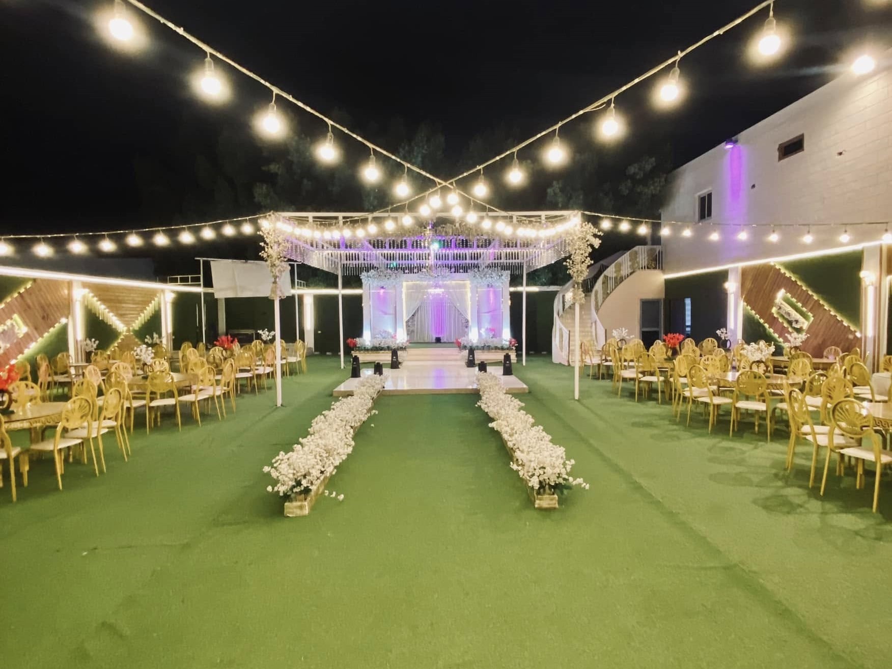 نحن في قاعة Villa Hall نقدم لكِ أفضل تجربة لحفل زفاف أو حفلة مميزة في قاعة أوبن إير مجهزة بالكامل. تحتوي القاعة على غرفة خاصة للعروس، وأحدث تقنيات الصوت مع DJ، بالإضافة إلى ديكورات كوشة مميزة.