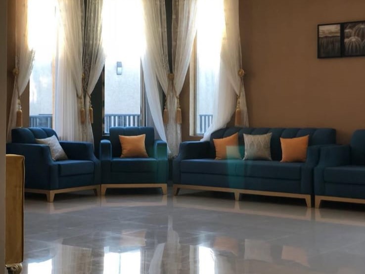 - صالة فسيحة بتصميم أنيق تناسب الجلسات العائلية.