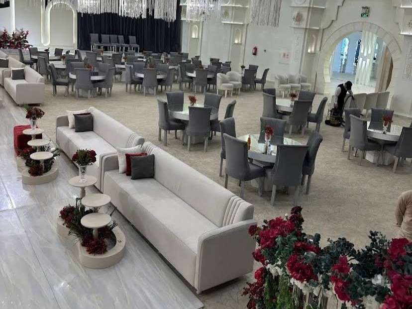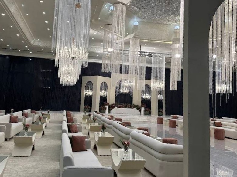 هذا الاتساع يجعل القاعة مناسبة للمناسبات التي تحتاج إلى قدرة استيعابية عالية مع توزيع مدروس للمساحات بما يضمن راحة الحاضرين.