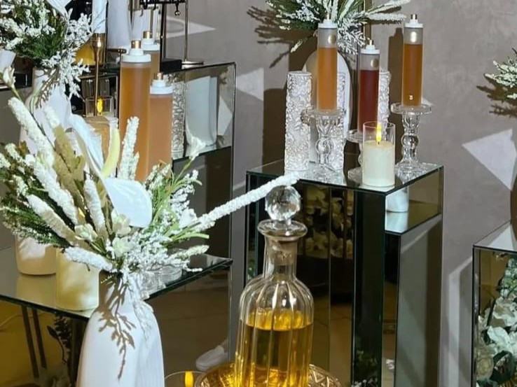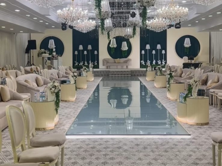 الديكورات عندنا تجنن, ثريات كريستال ما تشوفها إلا في أفلام هوليوود، وجدران مزينة بزخارف تجيب العين. ممر الزفاف عندنا مفروش بأفخم أنواع القماش، والكوشة؟ تخلّي كل الضيوف يطقطقون عليها.