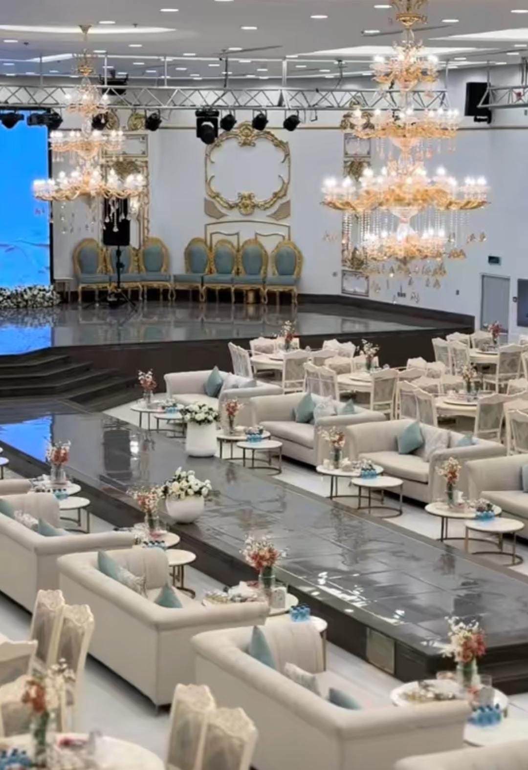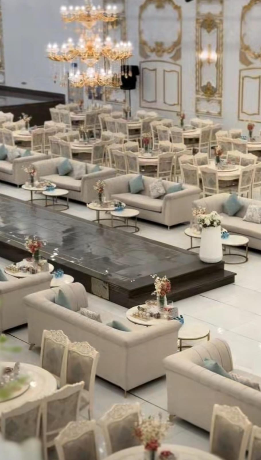 تم تجهيز القاعات بأسلوب يجمع بين الفخامة والعملية، مع توزيع مدروس للطاولات والكراسي يضمن راحة الضيوف وسهولة الحركة داخل الصالة.
