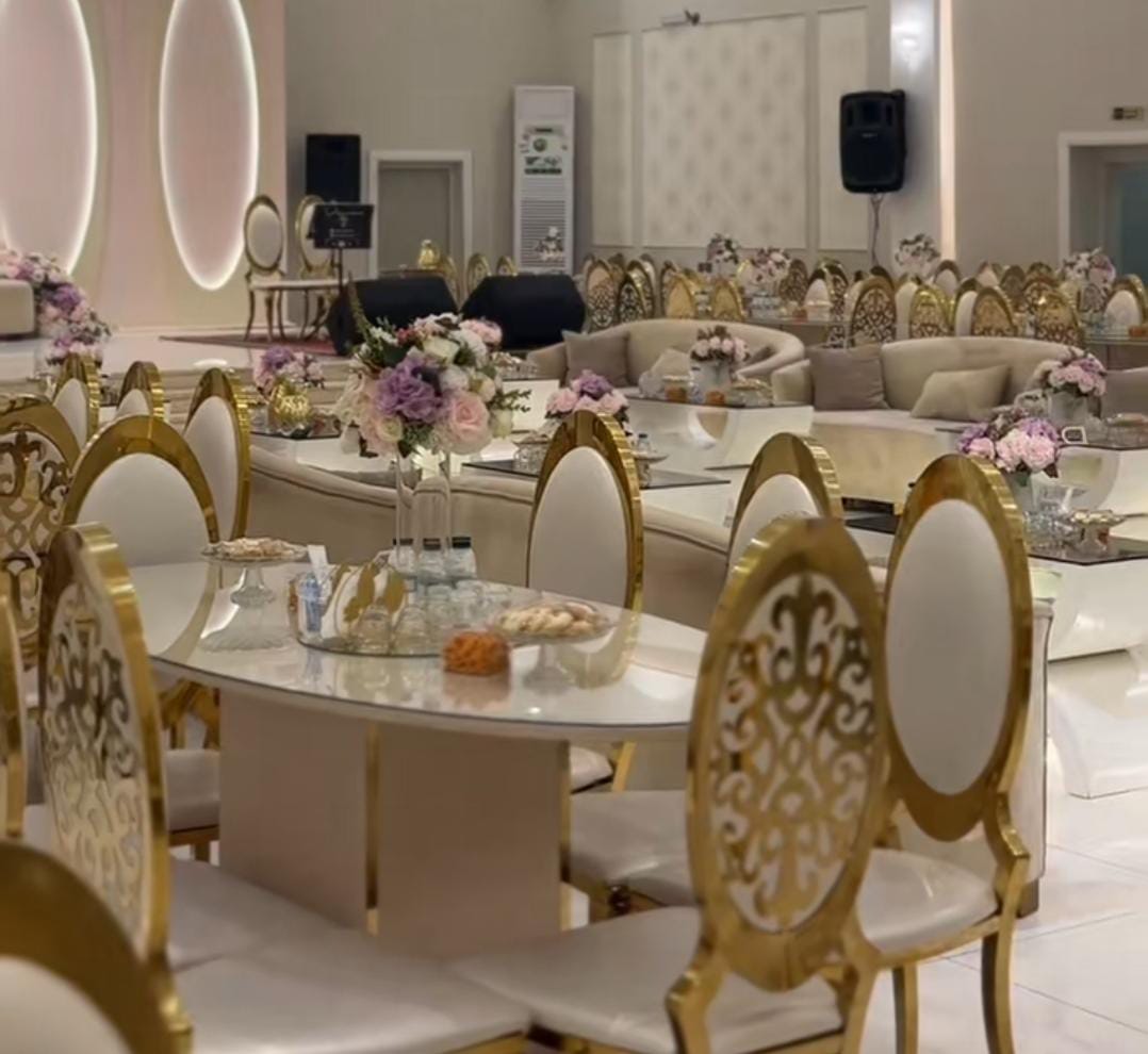 قاعة رويال مصممة لاستقبال حفلات الزواج، الملكة، الخطوبة، التخرج، والمناسبات الخاصة، مع توزيع عملي للطاولات والكراسي يضمن راحة الضيوف وانسيابية الحركة داخل الصالة.