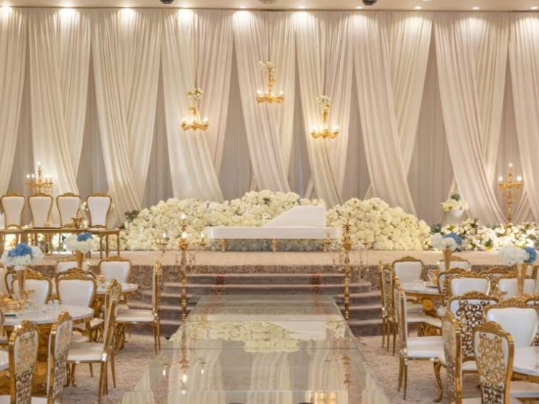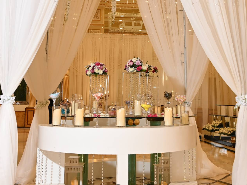 تنسيق الكوشة وتجهيز القاعة باحترافية.