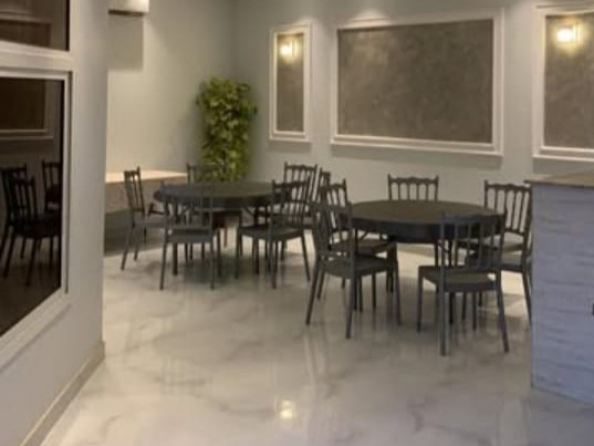 - صالة طعام واسعة مع طاولات تناسب العزائم.