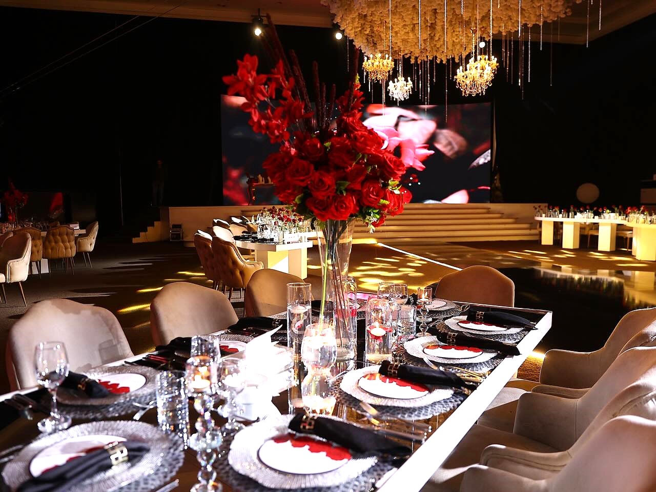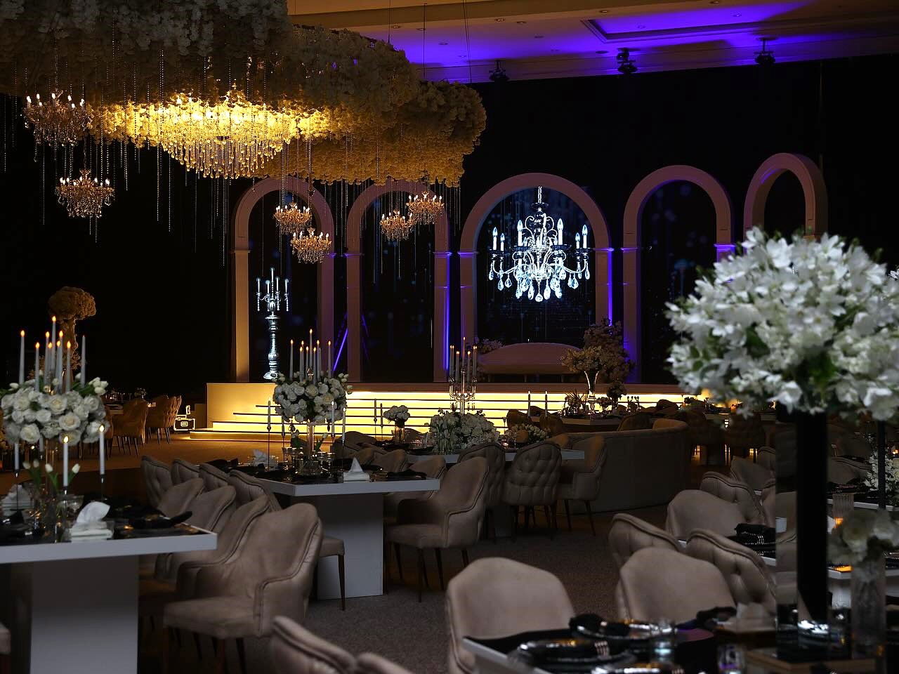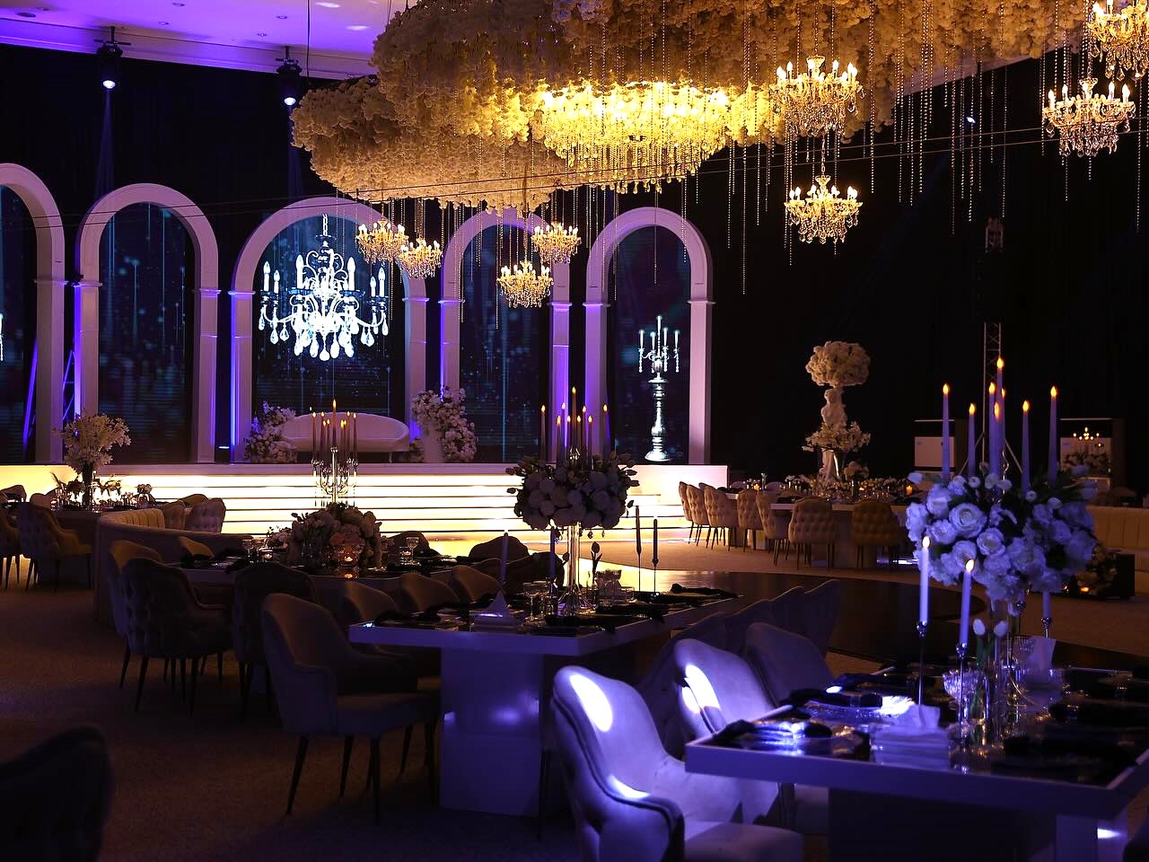 تتميّز القاعة الملكية بأحدث الديكورات العصرية، وإطلالة داخلية راقية تمنح الحفل طابع مهيب، حيث يمتزج الذوق الرفيع مع الفخامة ليكون كل ركن شاهدًا على عظمة المناسبة.