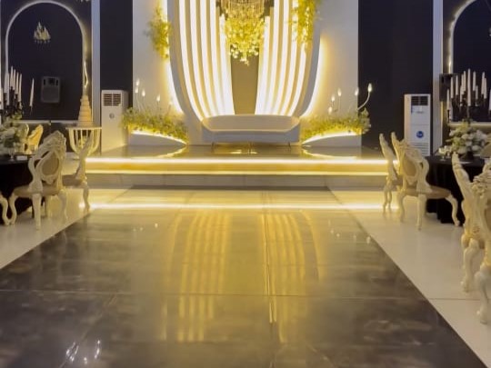 كوشة أنيقة بتصميم فاخر تتناسب مع مساحة القاعة