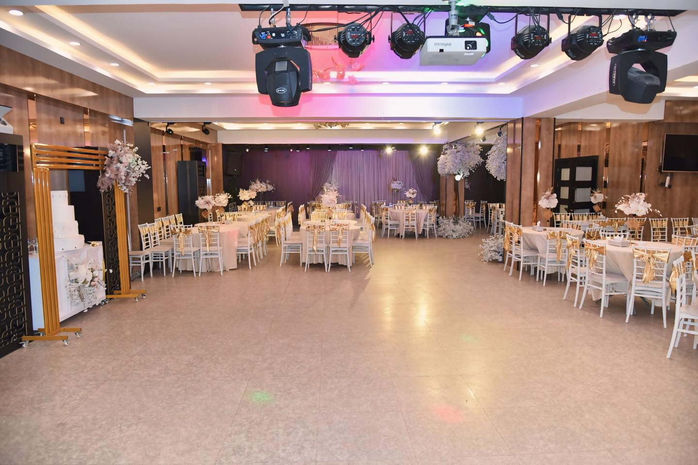 القاعة مصممة بذوق راقي يجمع الجمال والأناقة والفخامة، وتستوعب لحد 300 شخص، ومجهزة لاستقبال حفلات الزفاف، المناسبات الخاصة، والمؤتمرات. نهتم بكل جديد ونقدّم باقات متكاملة تشمل تنظيم الحفل، الإضاءة، الصوت، والتصوير باحترافية عالية.