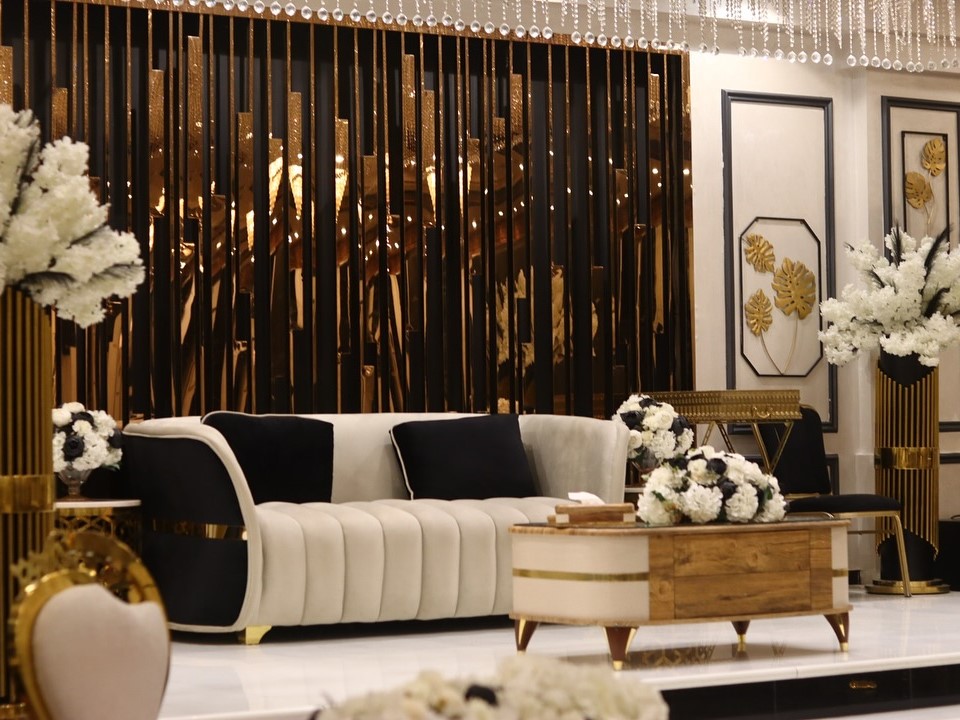 تجمع بين الألوان الملكية الراقية والتفاصيل المعمارية المبهرة التي تمنح المكان هيبة وأناقة خاصة.