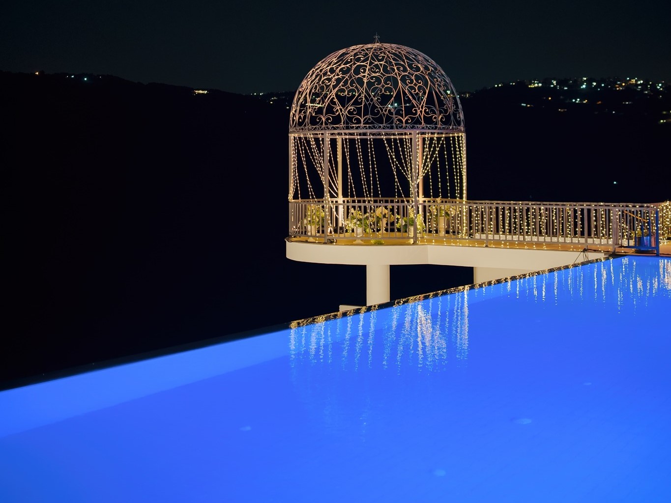 حمام سباحة كبير بإضاءة ليلية مميزة