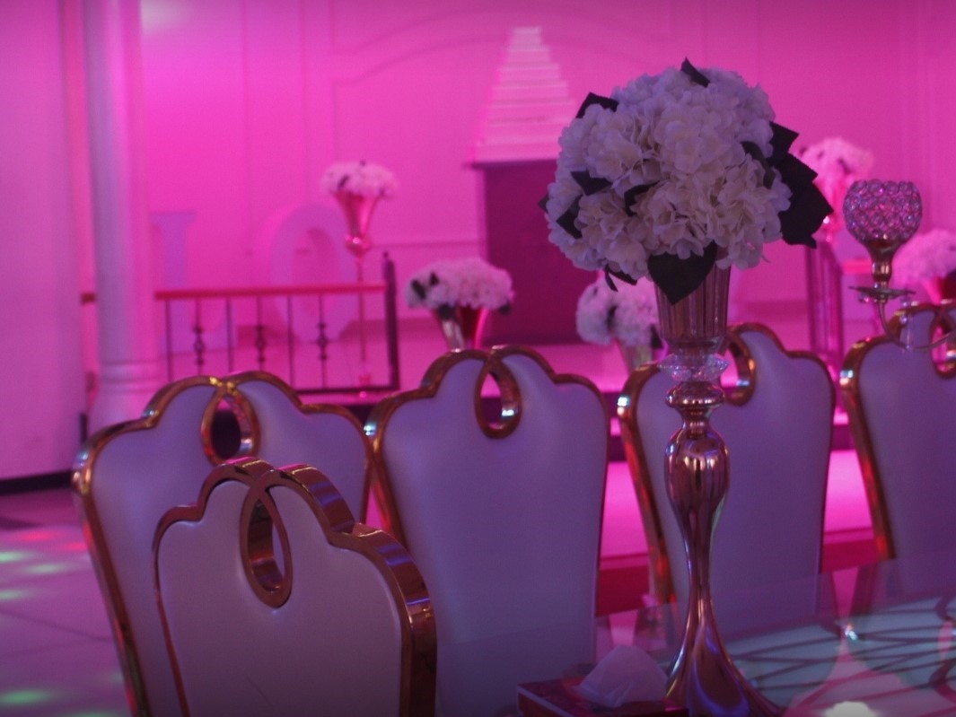 تم تصميم الصالة بعناية لتوفير أجواء راقية ومساحات رحبة قادرة على استيعاب مناسبات الزفاف والخطوبة بأفضل شكل ممكن.