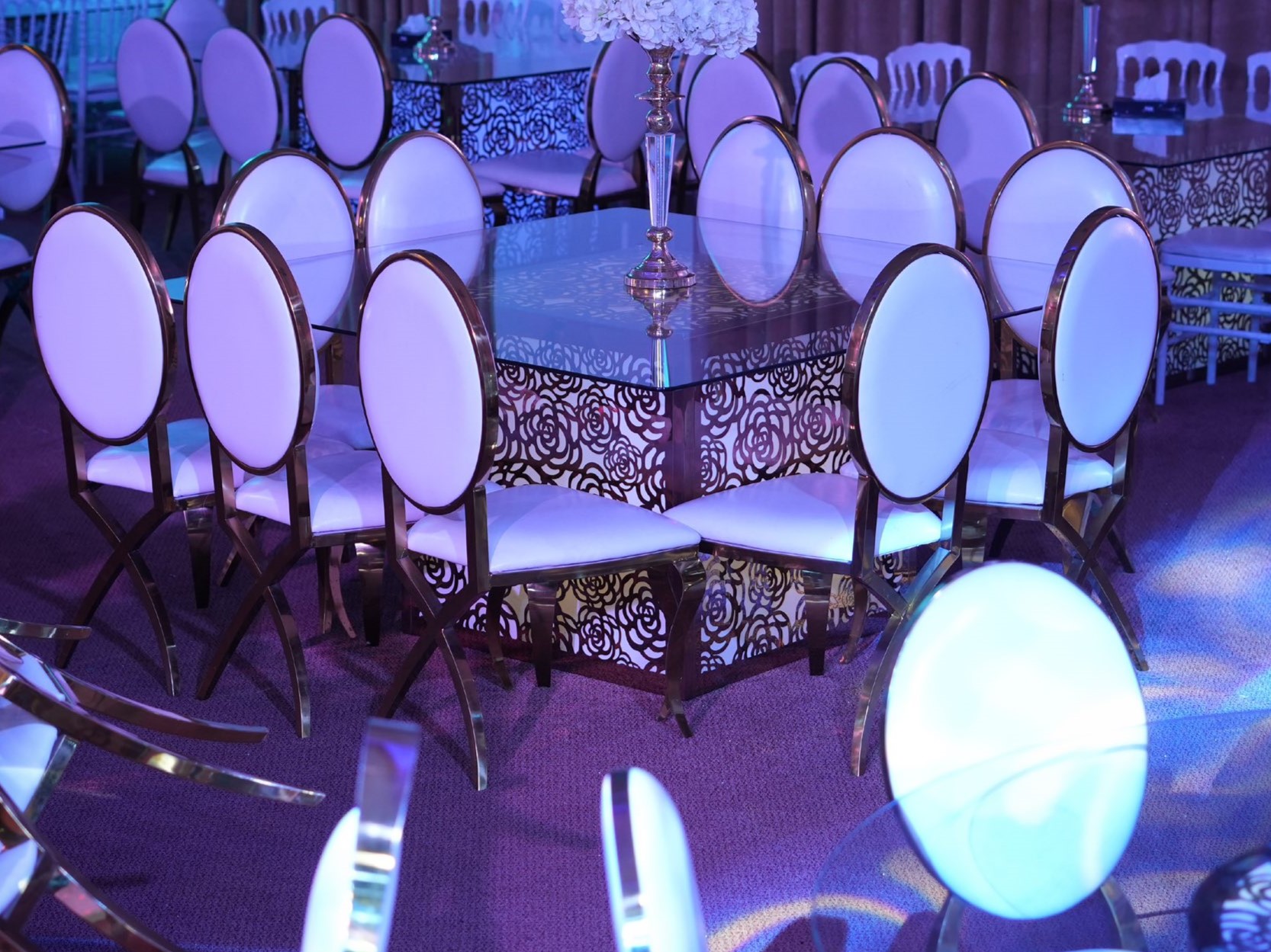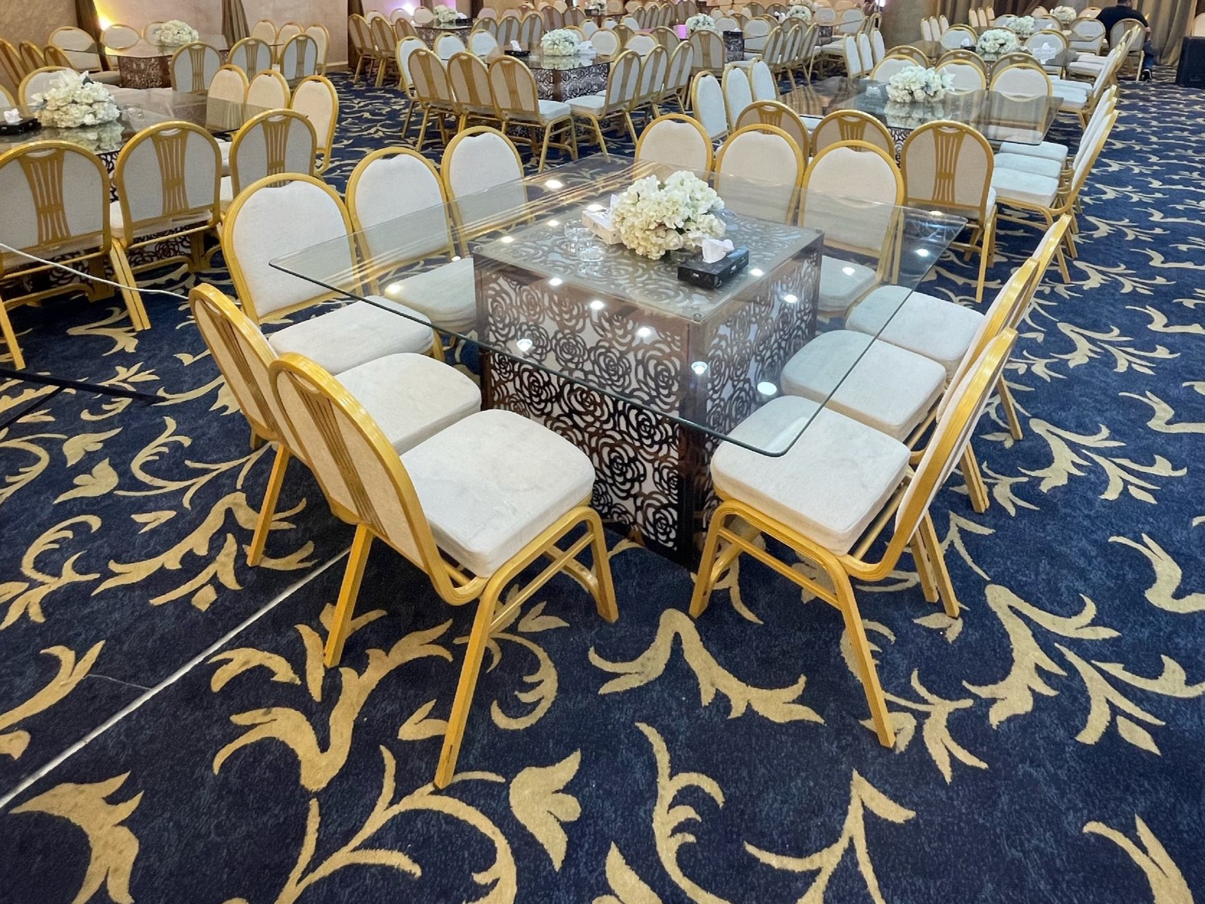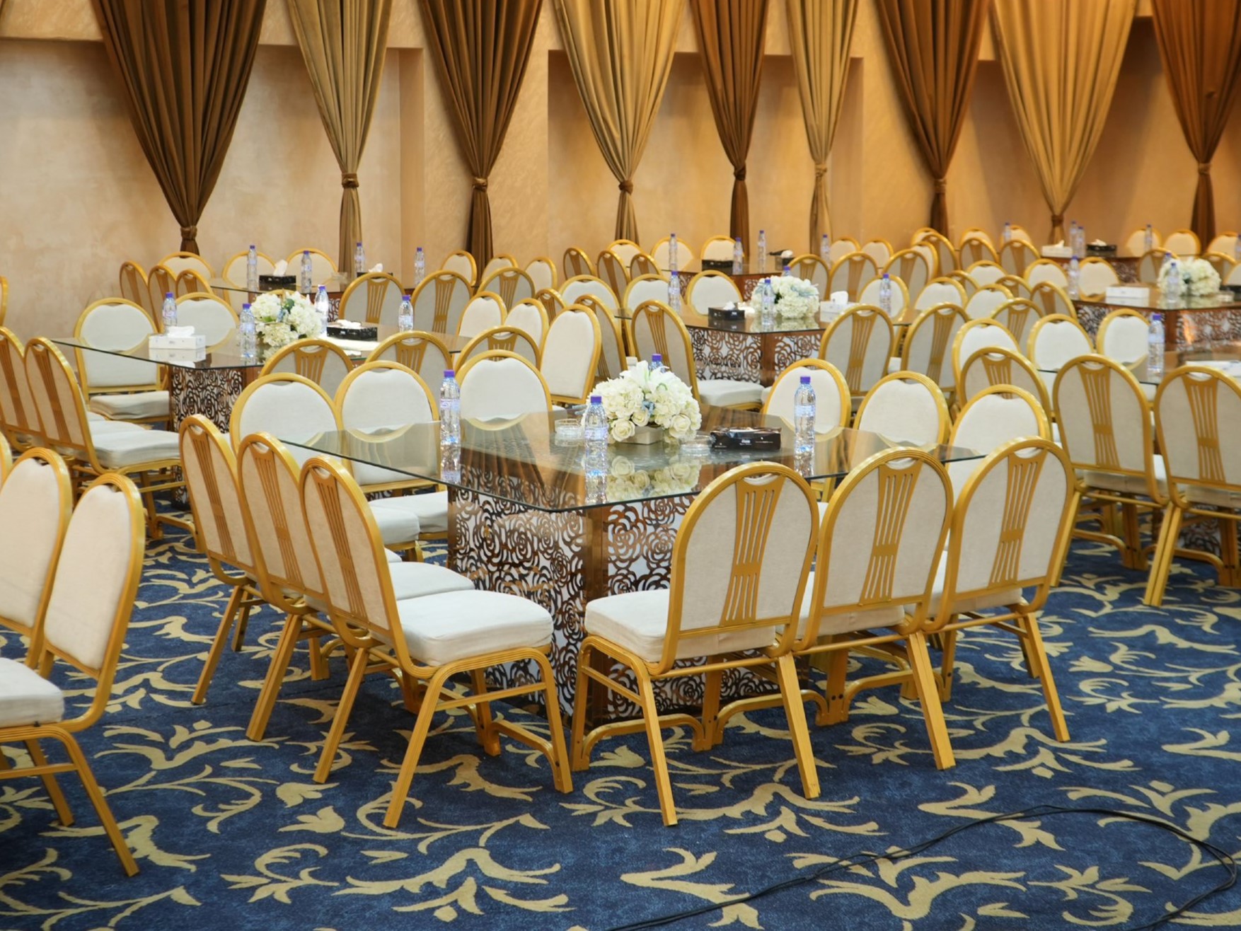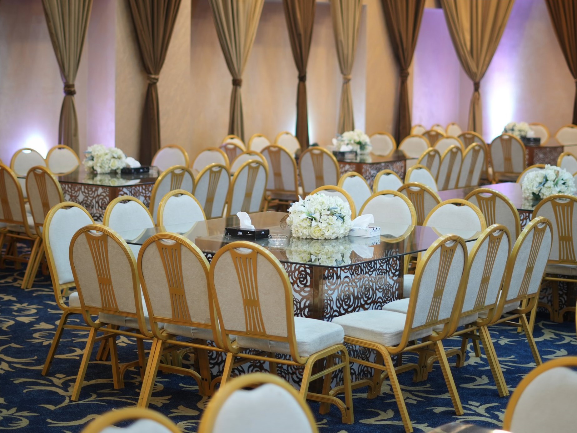 • قاعات فسيحة تتسع لما يصل إلى 550 ضيفًا في كل من قاعة السيدات والرجال، بتصميم أنيق وسقف مرتفع بدون أعمدة لحجب الرؤية.
