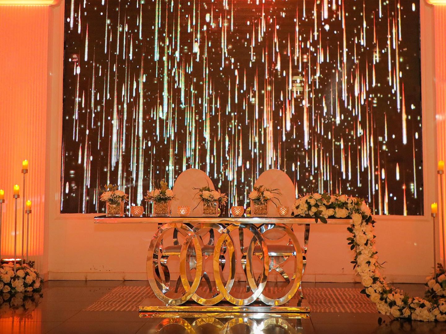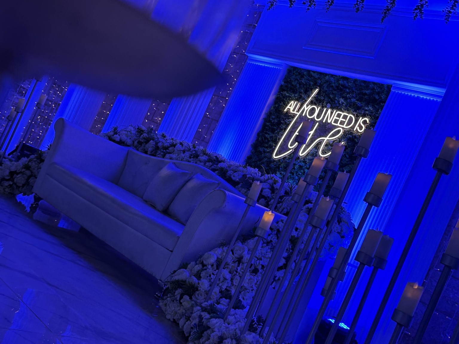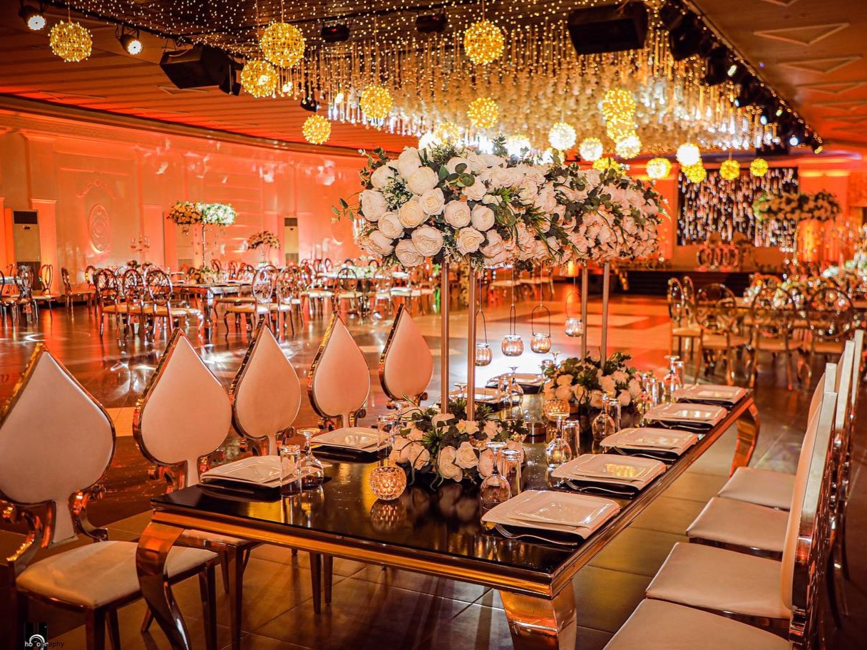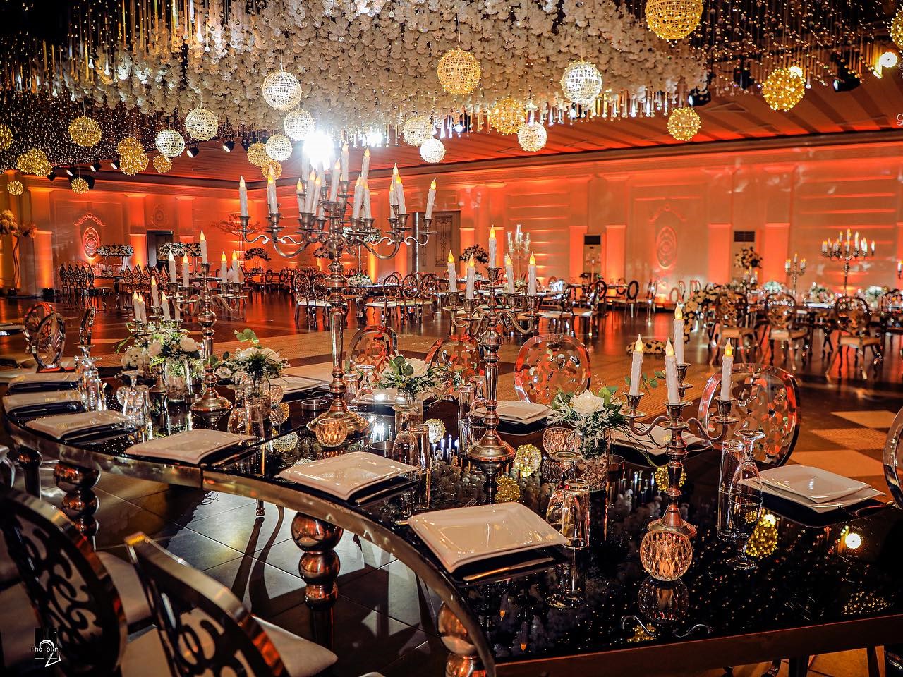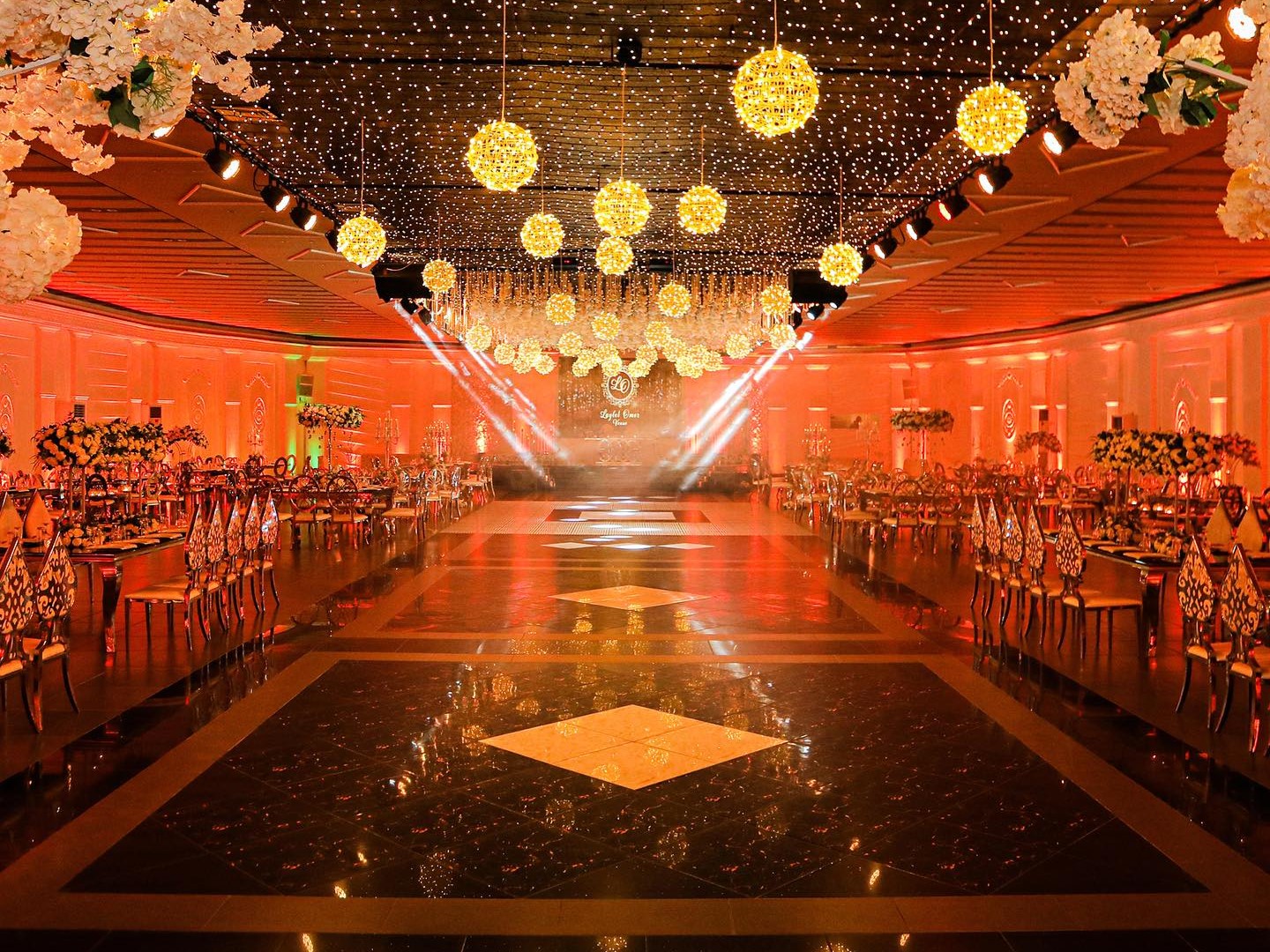 الديكور الداخلي مدروس بعناية ليعكس ذوق راقٍ ولمسة عصرية، مع توزيع مريح للطاولات ومساحات واسعة بتسهّل حركة الضيوف وتخلّي الحفل ماشي بسلاسة من الاستقبال لآخر السهرة. الإضاءة المتناسقة بتضيف جو دافئ ورومانسي، وبتحوّل القاعة لمشهد يليق بأهم ليلة بحياة العروسين.