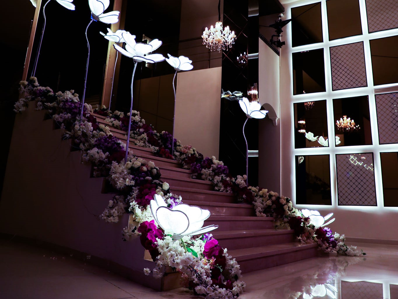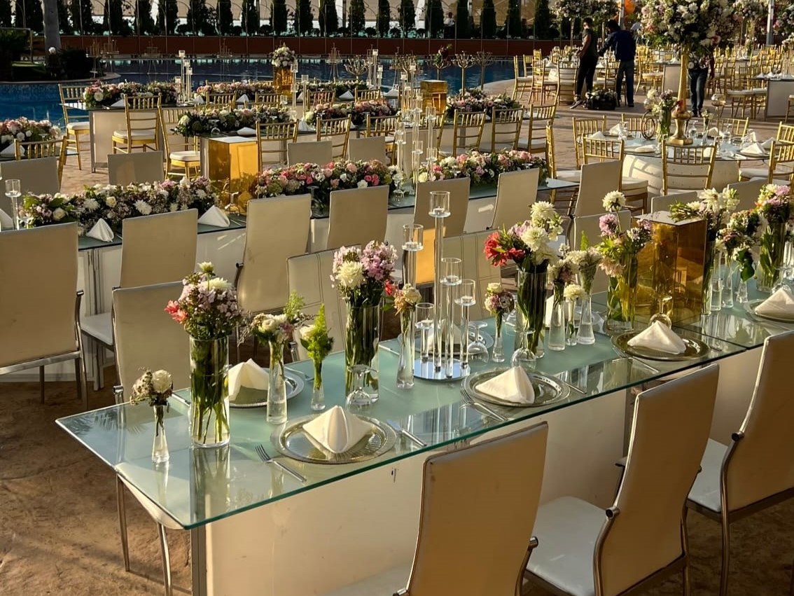 كل إعداد بالحفل مصمم ليخلق إحساس بالأناقة والجمال، ويحوّل الليلة لذكرى مشرقة بتبقى محفورة بذاكرة العروسين وضيوفهم.