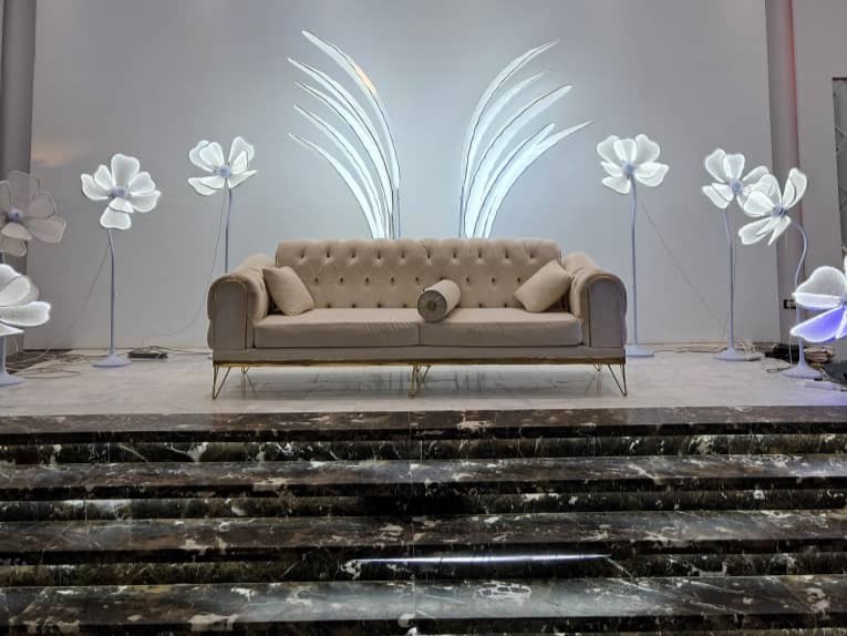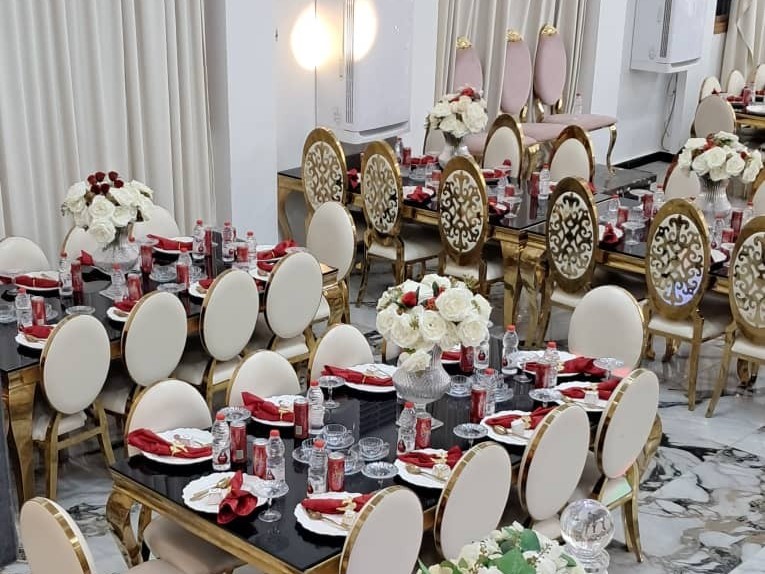 - تصميم عصري يجمع بين الفخامة والدفء، مع إضاءة ساحرة تضفي لمسة فنية على كل مناسبة.