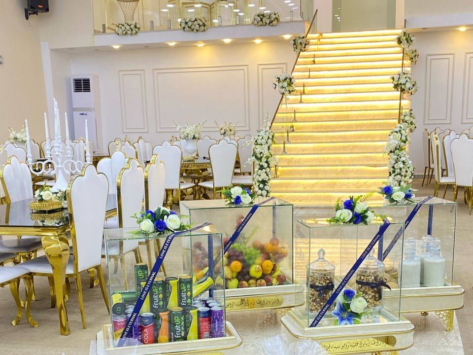 نوفر لكم ديكورات راقية بأحدث التصاميم، وإضاءة مبهرة تضيف لمسة فخمة على كل زاوية في القاعة.