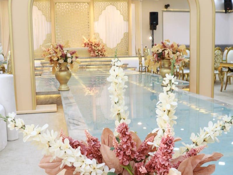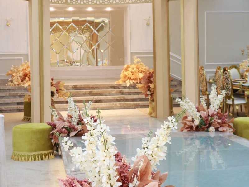 خدمة تنسيق القاعة من الأزهار إلى الطاولات والكراسي