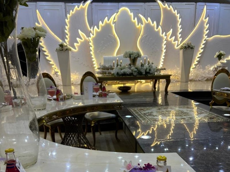 تتميز القاعة بديكور ثابت مصمم بعناية ليمنحكم أجواء راقية تليق بمناسباتكم، مع إمكانية التنسيق الكامل التي تقدم أحدث التصاميم وخدمة سيرفز احترافية.