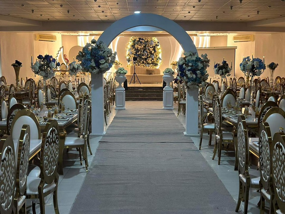 قاعة فخمة بتصميم راقٍ تتسع لما يزيد عن 250 ضيف، مجهزة بأحدث أنظمة الإضاءة والصوت لتضفي على احتفالكم أجواء من الفخامة والتميز.
