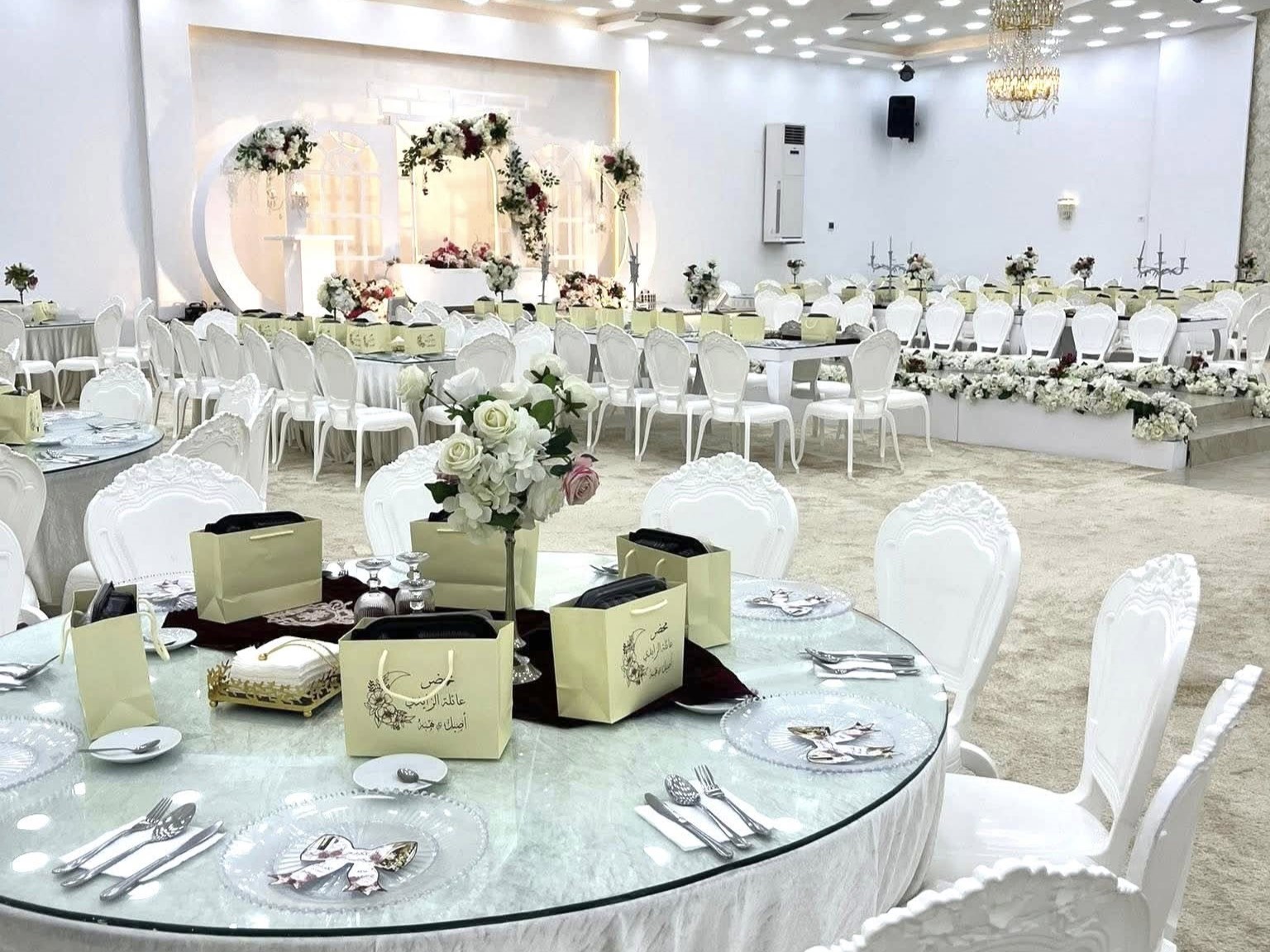 كل تفاصيل الحفل تُنفذ بذوق وأناقة، من لحظة دخول العرسان وحتى نهاية الليلة.