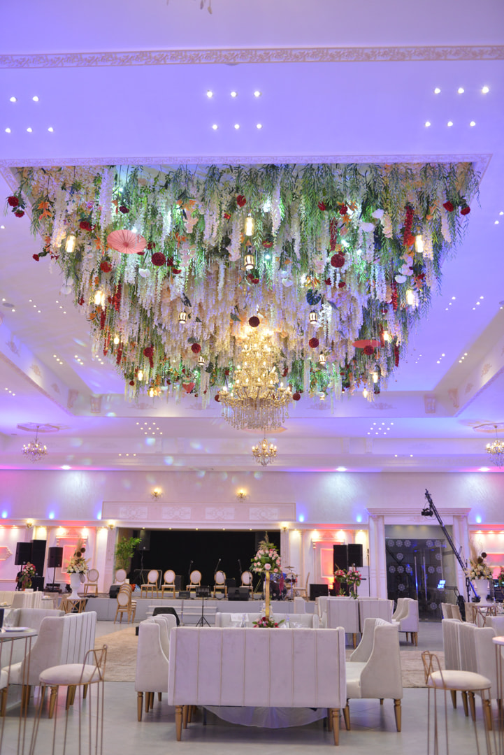 نهتم بأدق التفاصيل، من تنسيق الديكور حسب الطلب، تجهيز الكوشة، نظام صوتي احترافي ودي جي، إضاءة عصرية، ترتيب الطاولات بطريقة أنيقة، وخدمة ضيافة بإشراف طاقم منظم يواكب الحدث خطوة بخطوة.