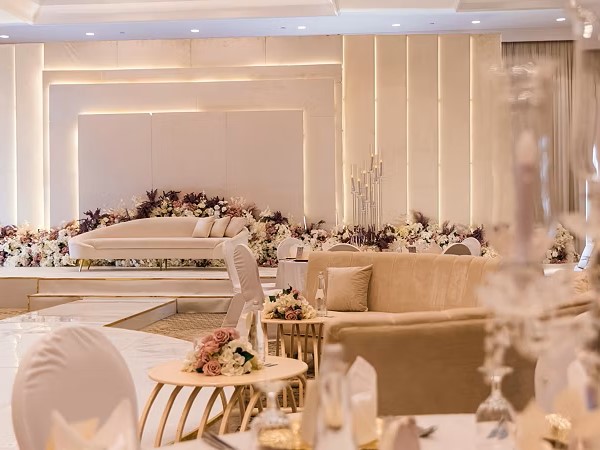 قاعة المندلون هي الخيار المثالي للأعراس وحفلات الاستقبال في مسقط، بتصميمها الأنيق ومساحتها البالغة 200 متر مربع، والتي تتسع لما يصل إلى 200 ضيف.