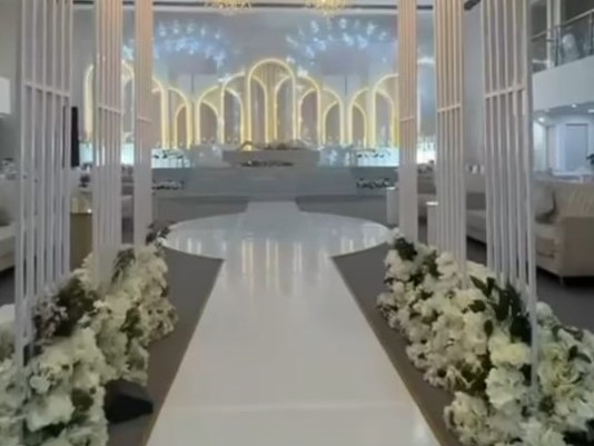 تتكون القاعة من طابقين فسيحين مجهزين بأحدث أنظمة الإضاءة والصوت، مع درج ملكي خاص لنزول العروس يضفي لمسة من السحر على لحظة دخولها. أما الديكورات، فهي مزيج من الثريات الكريستالية الفاخرة، والجدران المزخرفة، والأرضيات الرخامية اللامعة التي تعكس جمال المناسبة وروعتها.