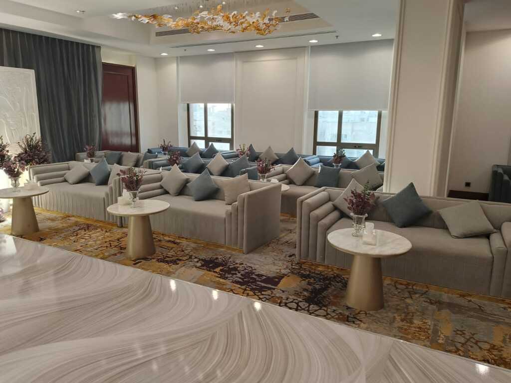 تنسيق كامل للقاعة والكوشة بأحدث الأساليب.