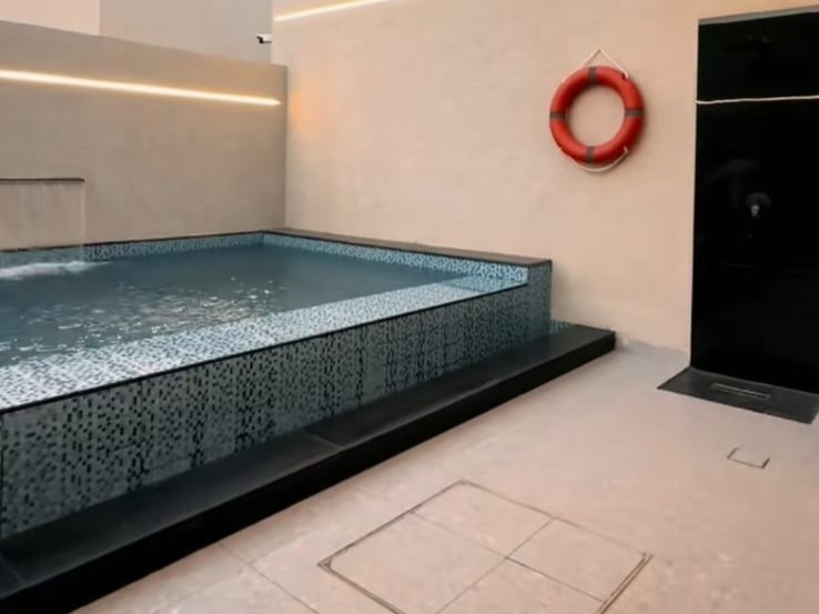 يحتوي على مسبح خاص بعمق 180 سم مع جلسة شواء خارجية،